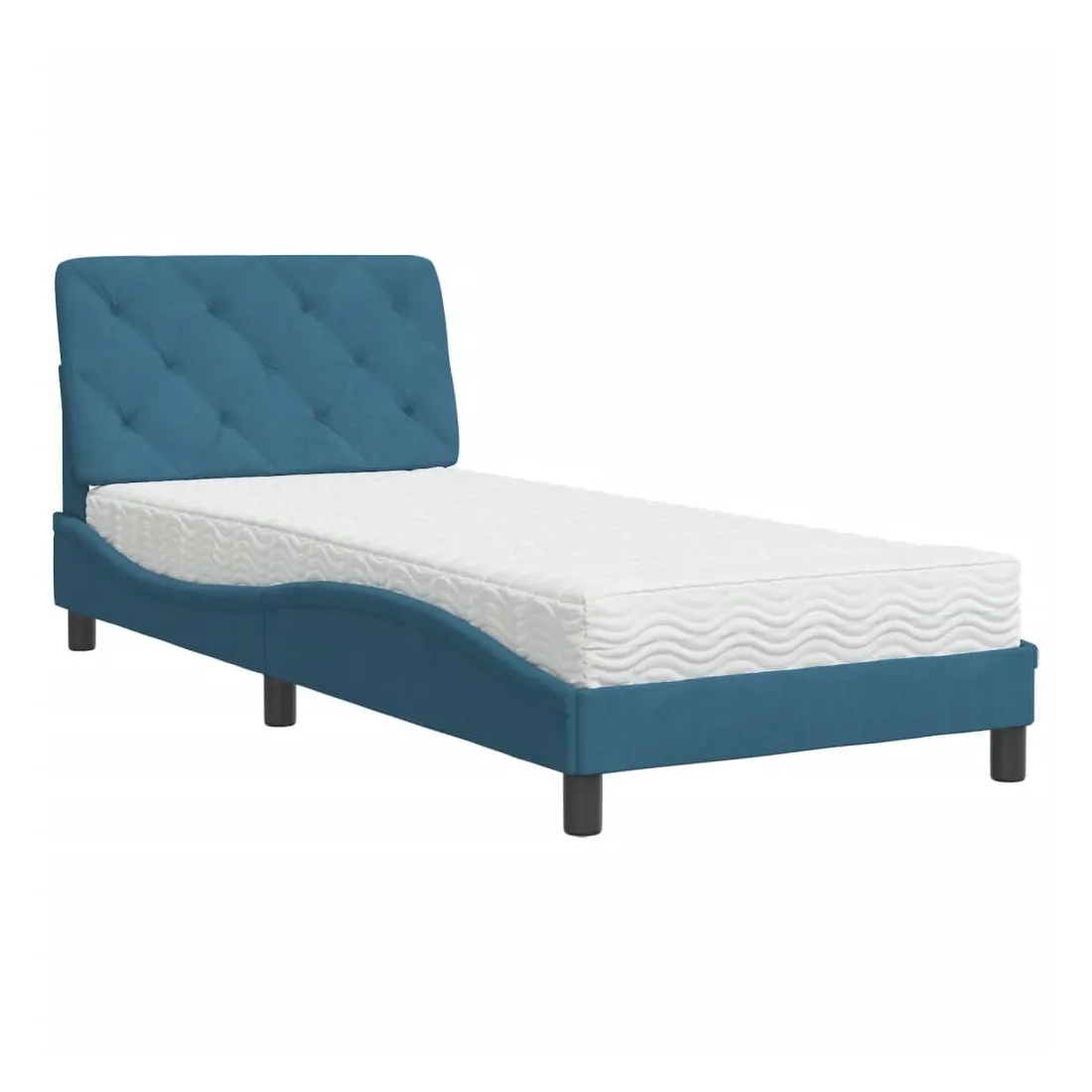 Obtenez une meilleure nuit de sommeil reposante grâce à ce lit avec matelas ! Il est un supplément accueillant à toute chambre à coucher. Velours doux : le velours est un tissu doux et confortable, agréable au toucher.Lattes de contreplaqué : les lattes de contreplaqué assurent une bonne répartition du poids, garantissant que le matelas reste en place à chaque torsion de votre corps pendant le sommeil.Excellent soutien : la tête de lit vous offre un excellent soutien du dos lorsque vous êtes assis dans votre lit pour lire ou regarder la télévision.Matelas en mousse : ce matelas de lit en tissu à 3 couches est rempli de mousse PU 22D pour un confort optimal. Il contribue à soulager la fatigue et à favoriser la circulation sanguine, vous offrant ainsi une relaxation complète et une bonne qualité de sommeil. En outre, le matelas est disponible en dureté H2 et H3, de sorte que vous pouvez simplement tourner le matelas pour choisir la dureté qui vous convient le mieux.Design latéral ondulé : l’aspect ondulé du cadre de lit est élégant et sophistiqué, ajoutant une touche moderne et élégante à votre décor, ce qui en fait le point central de votre chambre à coucher.