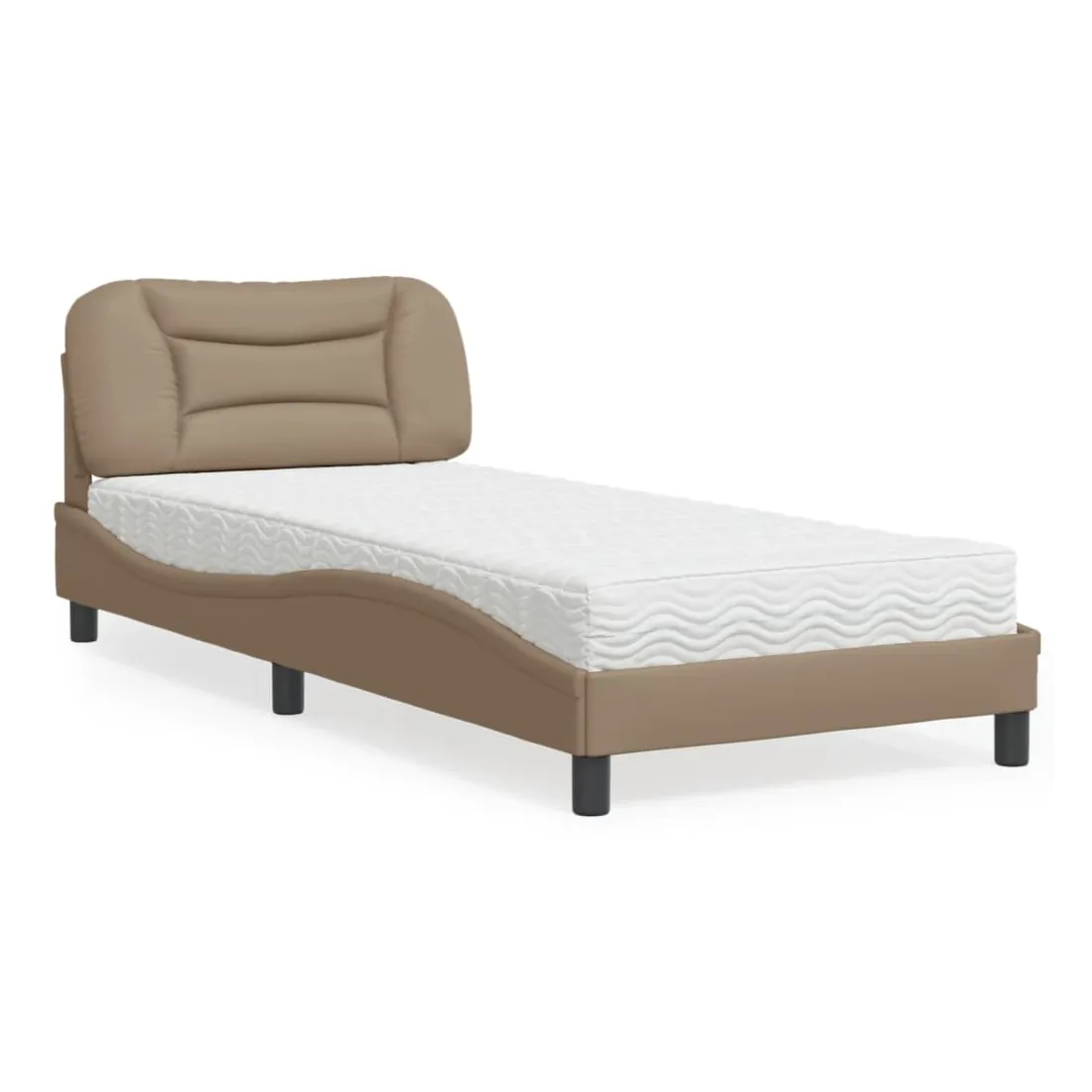 Obtenez une meilleure nuit de sommeil reposante grâce à ce lit avec matelas ! Il est un supplément accueillant à toute chambre à coucher. Similicuir durable : le similicuir de qualité supérieure est un matériau très durable. Il est résistant aux taches, ce qui le rend facile à nettoyer avec un chiffon humide. La surface lisse donne également un aspect luxueux et la beauté du cuir véritable.Lattes de contreplaqué : les lattes de contreplaqué assurent une bonne répartition du poids, garantissant que le matelas reste en place à chaque torsion de votre corps pendant le sommeil.Excellent soutien : la tête de lit vous offre un excellent soutien du dos lorsque vous êtes assis dans votre lit pour lire ou regarder la télévision.Matelas en mousse : ce matelas de lit en tissu à 3 couches est rempli de mousse PU 22D pour un confort optimal. Il contribue à soulager la fatigue et à favoriser la circulation sanguine, vous offrant ainsi une relaxation complète et une bonne qualité de sommeil. En outre, le matelas est disponible en dureté H2 et H3, de sorte que vous pouvez simplement tourner le matelas pour choisir la dureté qui vous convient le mieux.Design latéral ondulé : l’aspect ondulé du cadre de lit est élégant et sophistiqué, ajoutant une touche moderne et élégante à votre décor, ce qui en fait le point central de votre chambre à coucher.