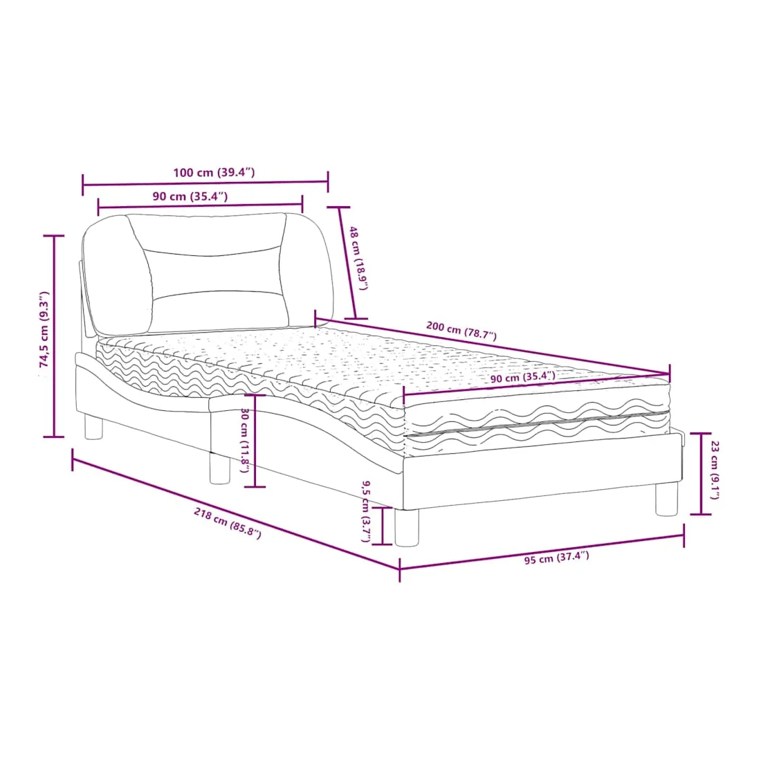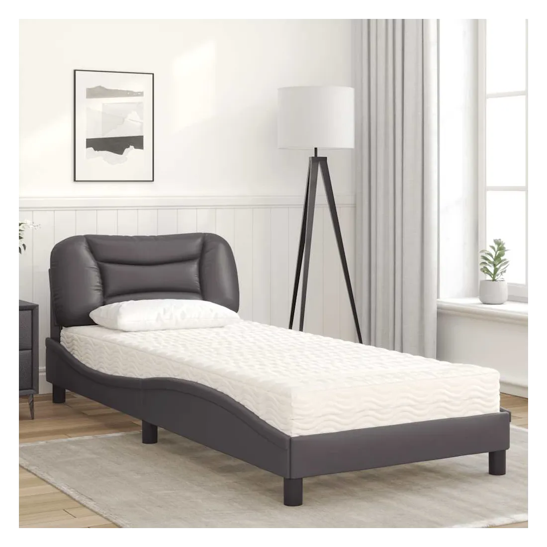 Obtenez une meilleure nuit de sommeil reposante grâce à ce lit avec matelas ! Il est un supplément accueillant à toute chambre à coucher. Similicuir durable : le similicuir de qualité supérieure est un matériau très durable. Il est résistant aux taches, ce qui le rend facile à nettoyer avec un chiffon humide. La surface lisse donne également un aspect luxueux et la beauté du cuir véritable.Lattes de contreplaqué : les lattes de contreplaqué assurent une bonne répartition du poids, garantissant que le matelas reste en place à chaque torsion de votre corps pendant le sommeil.Excellent soutien : la tête de lit vous offre un excellent soutien du dos lorsque vous êtes assis dans votre lit pour lire ou regarder la télévision.Matelas en mousse : ce matelas de lit en tissu à 3 couches est rempli de mousse PU 22D pour un confort optimal. Il contribue à soulager la fatigue et à favoriser la circulation sanguine, vous offrant ainsi une relaxation complète et une bonne qualité de sommeil. En outre, le matelas est disponible en dureté H2 et H3, de sorte que vous pouvez simplement tourner le matelas pour choisir la dureté qui vous convient le mieux.Design latéral ondulé : l’aspect ondulé du cadre de lit est élégant et sophistiqué, ajoutant une touche moderne et élégante à votre décor, ce qui en fait le point central de votre chambre à coucher.