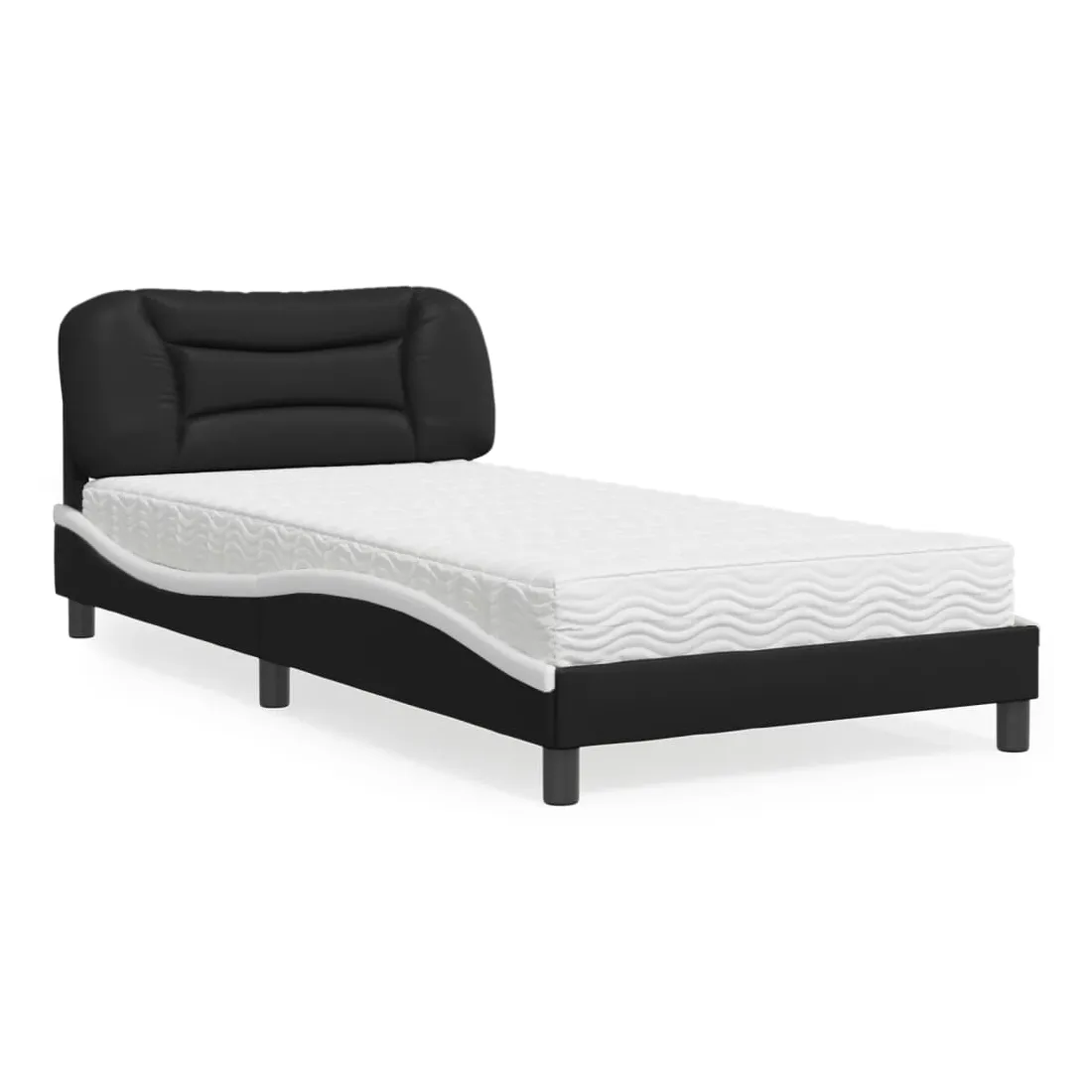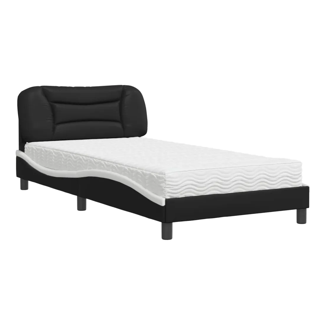 Obtenez une meilleure nuit de sommeil reposante grâce à ce lit avec matelas ! Il est un supplément accueillant à toute chambre à coucher. Similicuir durable : le similicuir de qualité supérieure est un matériau très durable. Il est résistant aux taches, ce qui le rend facile à nettoyer avec un chiffon humide. La surface lisse donne également un aspect luxueux et la beauté du cuir véritable.Lattes de contreplaqué : les lattes de contreplaqué assurent une bonne répartition du poids, garantissant que le matelas reste en place à chaque torsion de votre corps pendant le sommeil.Excellent soutien : la tête de lit vous offre un excellent soutien du dos lorsque vous êtes assis dans votre lit pour lire ou regarder la télévision.Matelas en mousse : ce matelas de lit en tissu à 3 couches est rempli de mousse PU 22D pour un confort optimal. Il contribue à soulager la fatigue et à favoriser la circulation sanguine, vous offrant ainsi une relaxation complète et une bonne qualité de sommeil. En outre, le matelas est disponible en dureté H2 et H3, de sorte que vous pouvez simplement tourner le matelas pour choisir la dureté qui vous convient le mieux.Design latéral ondulé : l’aspect ondulé du cadre de lit est élégant et sophistiqué, ajoutant une touche moderne et élégante à votre décor, ce qui en fait le point central de votre chambre à coucher.
