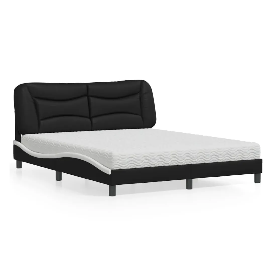 Obtenez une meilleure nuit de sommeil reposante grâce à ce lit avec matelas ! Il est un supplément accueillant à toute chambre à coucher. Similicuir durable : le similicuir de qualité supérieure est un matériau très durable. Il est résistant aux taches, ce qui le rend facile à nettoyer avec un chiffon humide. La surface lisse donne également un aspect luxueux et la beauté du cuir véritable.Lattes de contreplaqué : les lattes de contreplaqué assurent une bonne répartition du poids, garantissant que le matelas reste en place à chaque torsion de votre corps pendant le sommeil.Excellent soutien : la tête de lit vous offre un excellent soutien du dos lorsque vous êtes assis dans votre lit pour lire ou regarder la télévision.Matelas en mousse : ce matelas de lit en tissu à 3 couches est rempli de mousse PU 22D pour un confort optimal. Il contribue à soulager la fatigue et à favoriser la circulation sanguine, vous offrant ainsi une relaxation complète et une bonne qualité de sommeil. En outre, le matelas est disponible en dureté H2 et H3, de sorte que vous pouvez simplement tourner le matelas pour choisir la dureté qui vous convient le mieux.Design latéral ondulé : l’aspect ondulé du cadre de lit est élégant et sophistiqué, ajoutant une touche moderne et élégante à votre décor, ce qui en fait le point central de votre chambre à coucher.