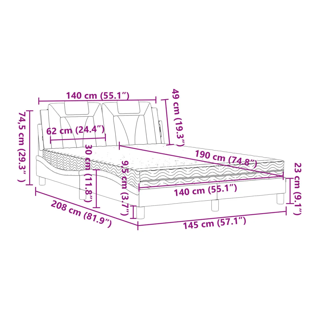 vidaXLObtenez une meilleure nuit de sommeil reposante grâce à ce lit avec matelas ! Il est un supplément accueillant à toute chambre à coucher. Similicuir durable : le similicuir de qualité supérieure est un matériau très durable. Il est résistant aux taches, ce qui le rend facile à nettoyer avec un chiffon humide. La surface lisse donne également un aspect luxueux et la beauté du cuir véritable. Lattes de contreplaqué : les lattes de contreplaqué assurent une bonne répartition du poids, garantissant que le matelas reste en place à chaque torsion de votre corps pendant le sommeil. Excellent soutien : l'oreiller de tête de lit est rembourré avec de la mousse pour un confort ultra doux et optimal vous offre un excellent soutien du dos lorsque vous êtes assis dans votre lit pour lire ou regarder la télévision. Matelas en mousse : ce matelas de lit en tissu à 3 couches est rempli de mousse PU 22D pour un confort optimal. Il contribue à soulager la fatigue et à favoriser la circulation sanguine, vous offrant ainsi une relaxation complète et une bonne qualité de sommeil. En outre, le matelas est disponible en dureté H2 et H3, de sorte que vous pouvez simplement tourner le matelas pour choisir la dureté qui vous convient le mieux. Design latéral ondulé : l’aspect ondulé du cadre de lit est élégant et sophistiqué, ajoutant une touche moderne et élégante à votre décor, ce qui en fait le point central de votre chambre à coucher.