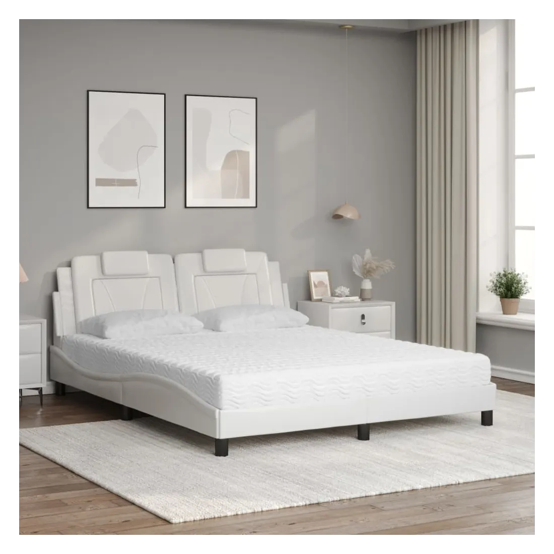 Obtenez une meilleure nuit de sommeil reposante grâce à ce lit avec matelas ! Il est un supplément accueillant à toute chambre à coucher. Similicuir durable : le similicuir de qualité supérieure est un matériau très durable. Il est résistant aux taches, ce qui le rend facile à nettoyer avec un chiffon humide. La surface lisse donne également un aspect luxueux et la beauté du cuir véritable. Lattes de contreplaqué : les lattes de contreplaqué assurent une bonne répartition du poids, garantissant que le matelas reste en place à chaque torsion de votre corps pendant le sommeil. Excellent soutien : l'oreiller de tête de lit est rembourré avec de la mousse pour un confort ultra doux et optimal vous offre un excellent soutien du dos lorsque vous êtes assis dans votre lit pour lire ou regarder la télévision. Matelas en mousse : ce matelas de lit en tissu à 3 couches est rempli de mousse PU 22D pour un confort optimal. Il contribue à soulager la fatigue et à favoriser la circulation sanguine, vous offrant ainsi une relaxation complète et une bonne qualité de sommeil. En outre, le matelas est disponible en dureté H2 et H3, de sorte que vous pouvez simplement tourner le matelas pour choisir la dureté qui vous convient le mieux. Design latéral ondulé : l’aspect ondulé du cadre de lit est élégant et sophistiqué, ajoutant une touche moderne et élégante à votre décor, ce qui en fait le point central de votre chambre à coucher.