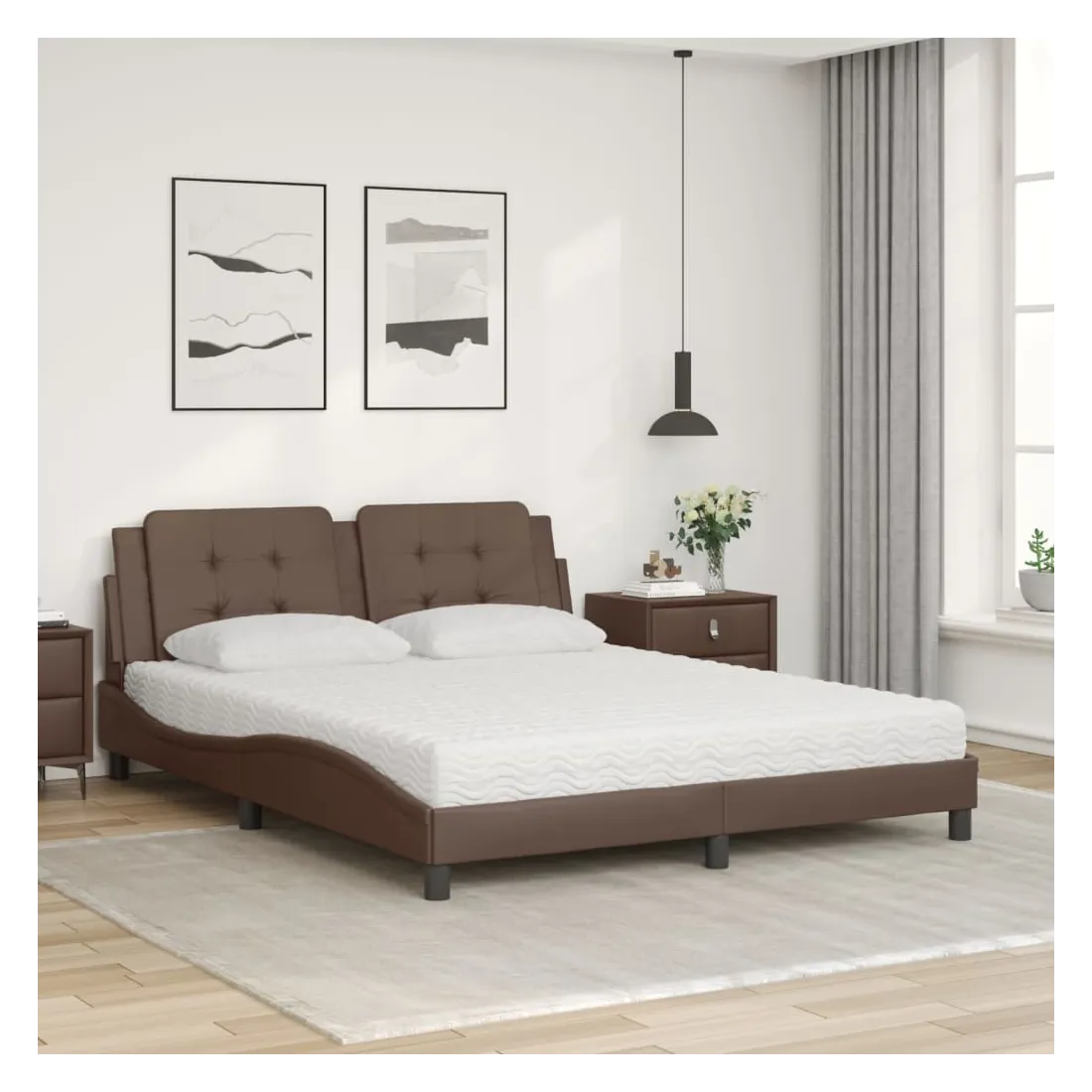 Lit avec matelas Zadar marron 160x200 cm similicuir