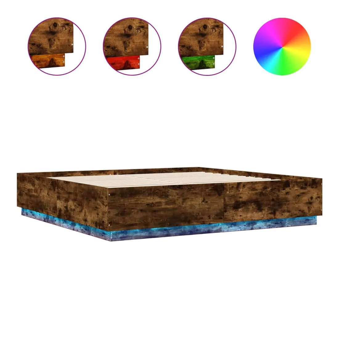 Cadre de lit avec LED sans matelas chêne fumé 200x200 cm