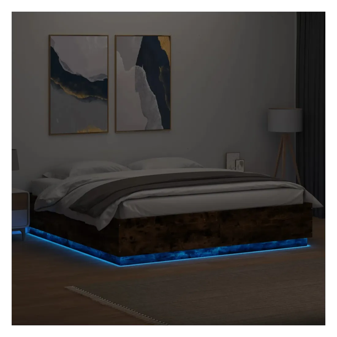 vidaXLObtenez une meilleure nuit de sommeil reposante grâce à ce cadre de lit avec lumières LED ! Il est un supplément accueillant à toute chambre à coucher. Matériau durable : le bois d'ingénierie est d'une qualité exceptionnelle avec une surface lisse et présente également résistance, stabilité et résistance à l'humidité.Lumières LED RVB : le cadre de lit est équipé de lumières LED RVB vibrantes. Avec divers menus personnalisables, vous pouvez changer sans effort la couleur des lumières et même les régler automatiquement. Ces lumières LED renforcent non seulement l'aspect contemporain du sommier, mais ajoutent également à son attrait tendance.Lattes robustes : les lattes de contreplaqué assurent une bonne répartition du poids, garantissant que le matelas reste en place à chaque torsion de votre corps pendant le sommeil. Bon à savoir :Un matelas n'est pas inclus avec ce lit. Nous offrons une sélection variée de matelas. Vous pouvez consulter notre boutique pour trouver un matelas assorti.Ce produit est doté d'un connecteur USB qui nécessite une source d'alimentation USB de 5V certifiée (non incluse).