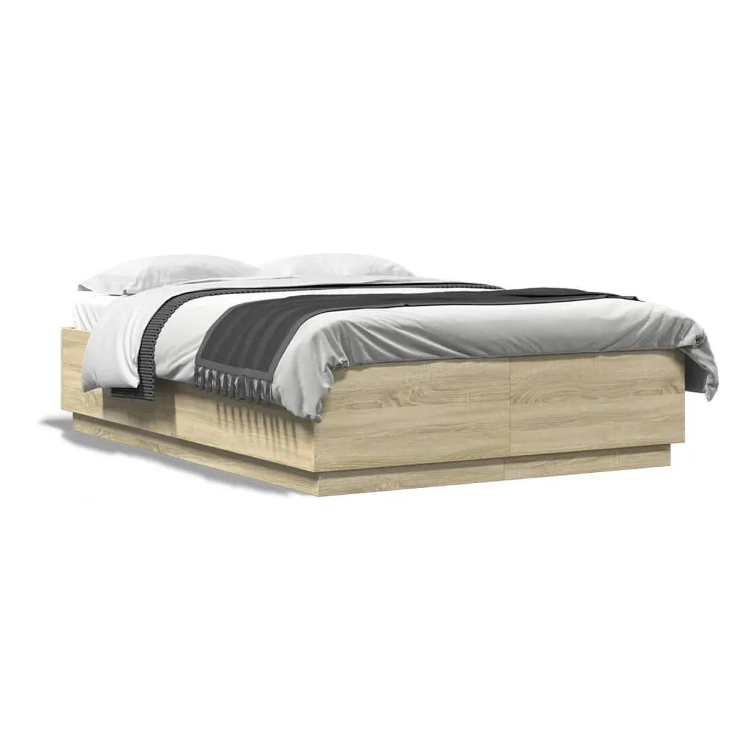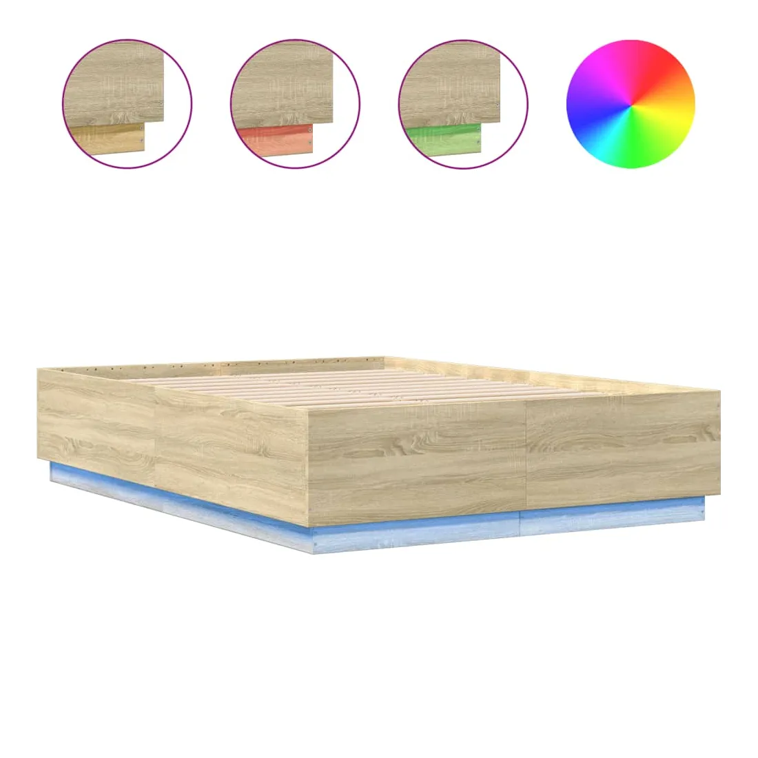 Obtenez une meilleure nuit de sommeil reposante grâce à ce cadre de lit avec lumières LED ! Il est un supplément accueillant à toute chambre à coucher. Matériau durable : le bois d'ingénierie est d'une qualité exceptionnelle avec une surface lisse et présente également résistance, stabilité et résistance à l'humidité.Lumières LED RVB : le cadre de lit est équipé de lumières LED RVB vibrantes. Avec divers menus personnalisables, vous pouvez changer sans effort la couleur des lumières et même les régler automatiquement. Ces lumières LED renforcent non seulement l'aspect contemporain du sommier, mais ajoutent également à son attrait tendance.Lattes robustes : les lattes de contreplaqué assurent une bonne répartition du poids, garantissant que le matelas reste en place à chaque torsion de votre corps pendant le sommeil. Bon à savoir :Un matelas n'est pas inclus avec ce lit. Nous offrons une sélection variée de matelas. Vous pouvez consulter notre boutique pour trouver un matelas assorti.Ce produit est doté d'un connecteur USB qui nécessite une source d'alimentation USB de 5V certifiée (non incluse).