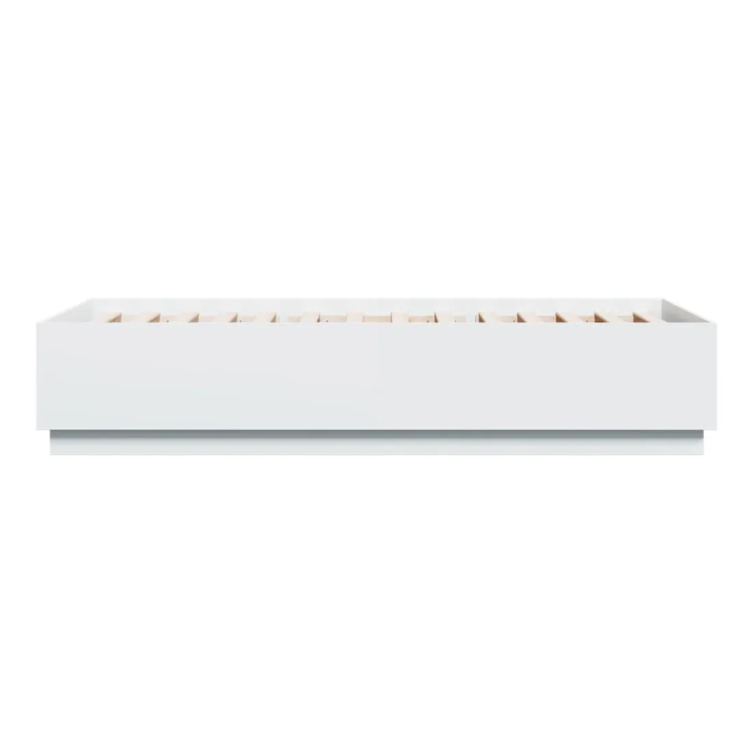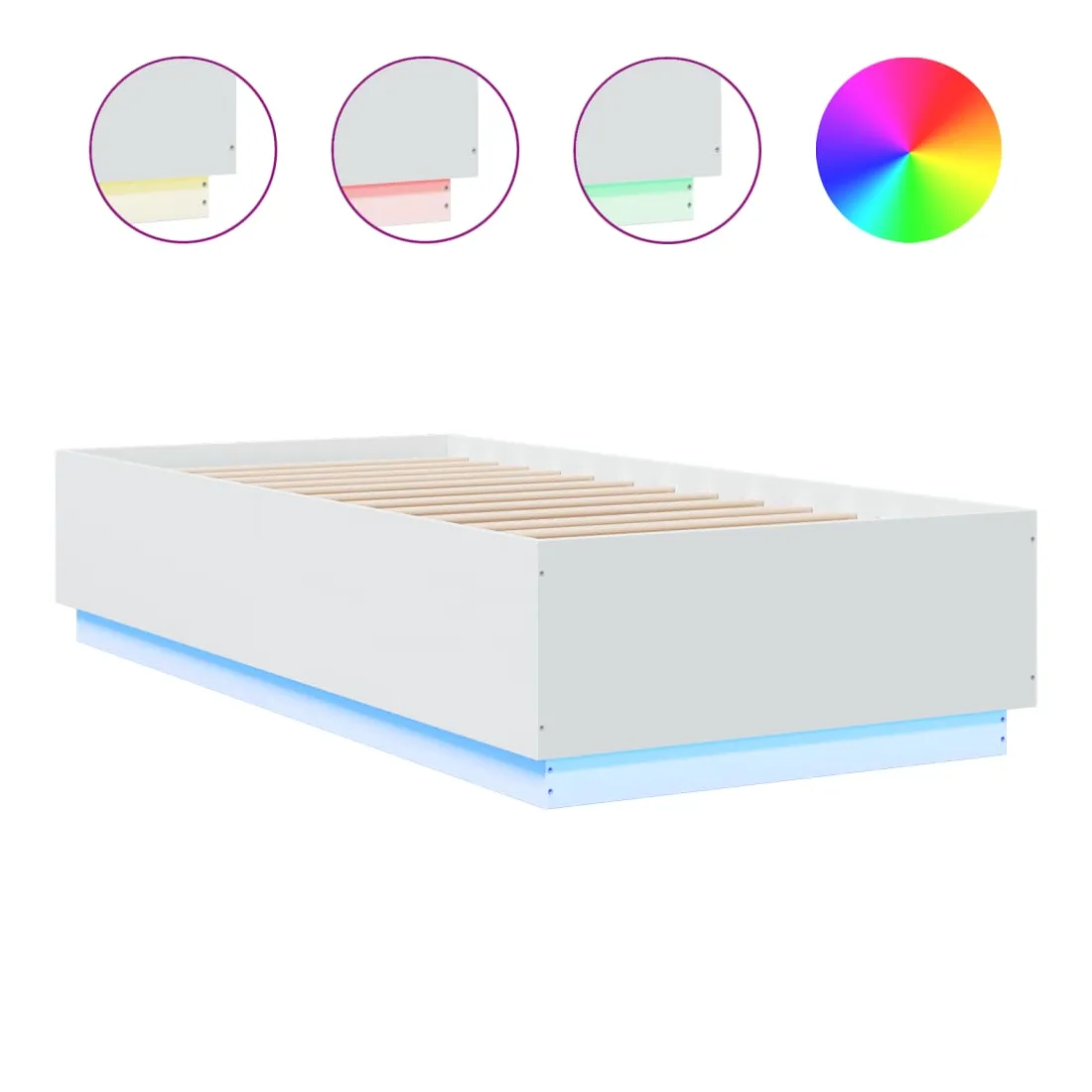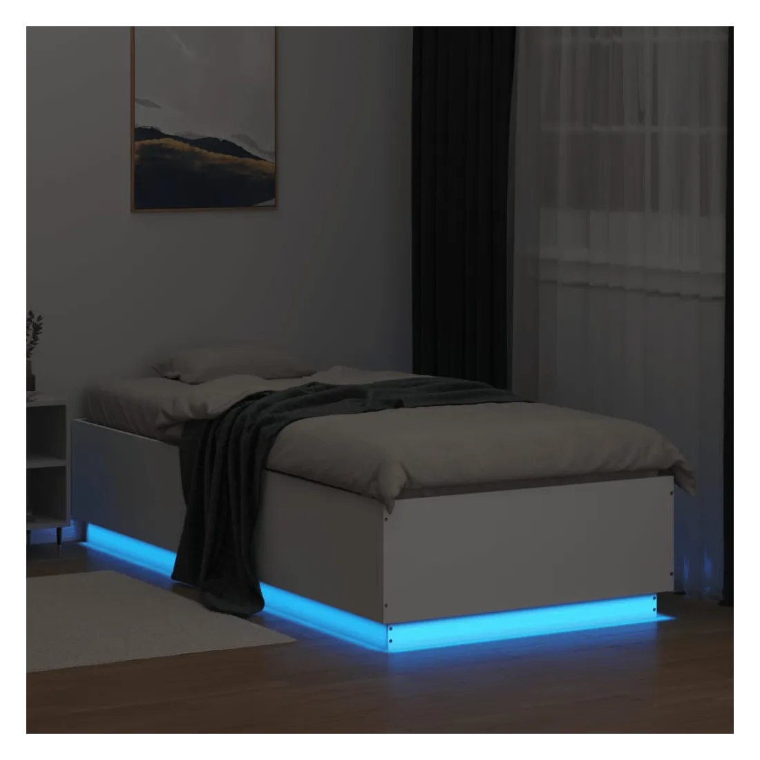Obtenez une meilleure nuit de sommeil reposante grâce à ce cadre de lit avec lumières LED ! Il est un supplément accueillant à toute chambre à coucher. Matériau durable : le bois d'ingénierie est d'une qualité exceptionnelle avec une surface lisse et présente également résistance, stabilité et résistance à l'humidité.Lumières LED RVB : le cadre de lit est équipé de lumières LED RVB vibrantes. Avec divers menus personnalisables, vous pouvez changer sans effort la couleur des lumières et même les régler automatiquement. Ces lumières LED renforcent non seulement l'aspect contemporain du sommier, mais ajoutent également à son attrait tendance.Lattes robustes : les lattes de contreplaqué assurent une bonne répartition du poids, garantissant que le matelas reste en place à chaque torsion de votre corps pendant le sommeil. Bon à savoir :Un matelas n'est pas inclus avec ce lit. Nous offrons une sélection variée de matelas. Vous pouvez consulter notre boutique pour trouver un matelas assorti.Ce produit est doté d'un connecteur USB qui nécessite une source d'alimentation USB de 5V certifiée (non incluse).
