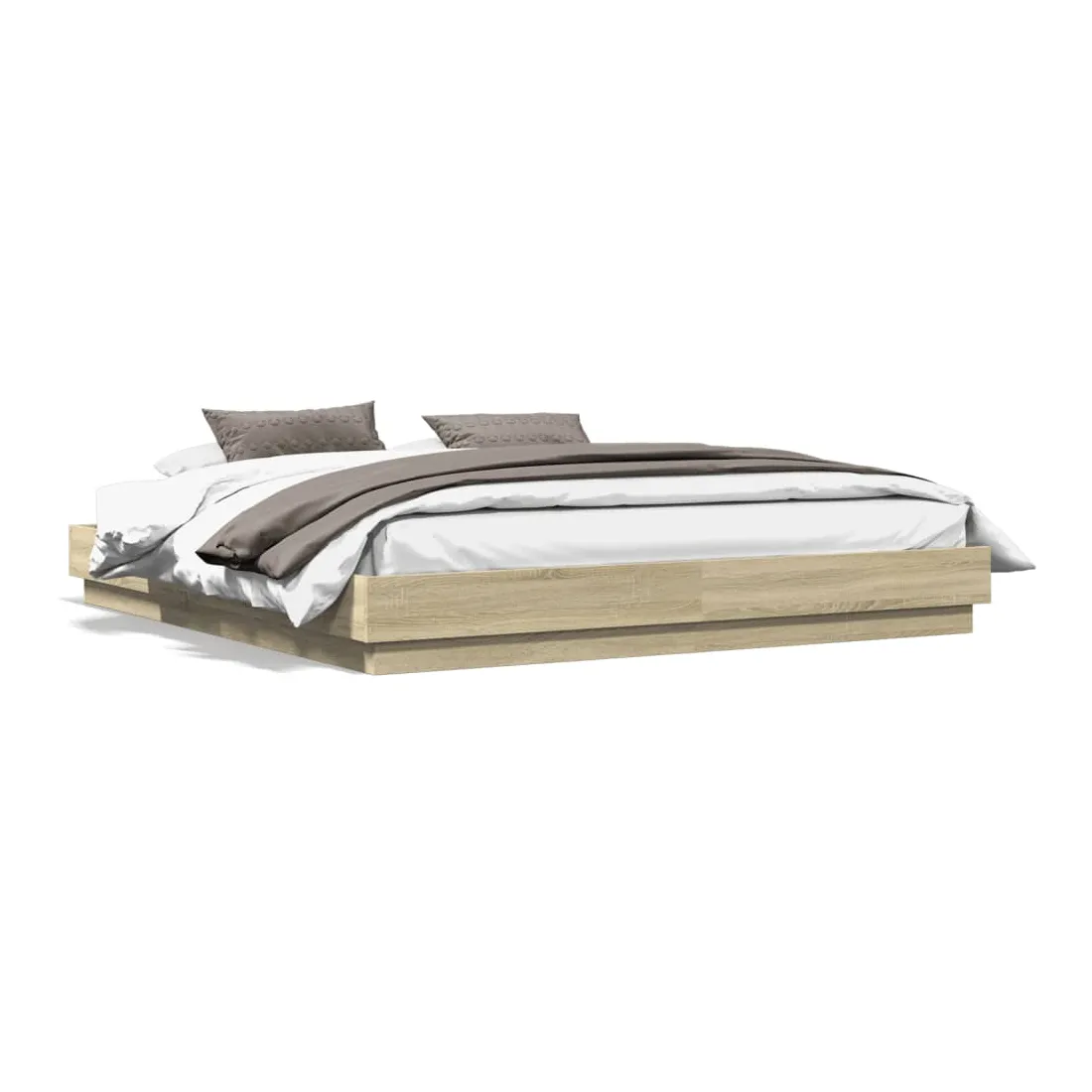 Obtenez une meilleure nuit de sommeil reposante grâce à ce cadre de lit avec lumières LED ! Il est un supplément accueillant à toute chambre à coucher. Matériau durable : le bois d'ingénierie est d'une qualité exceptionnelle avec une surface lisse et présente également résistance, stabilité et résistance à l'humidité.Lumières LED RVB : le cadre de lit est équipé de lumières LED RVB vibrantes. Avec divers menus personnalisables, vous pouvez changer sans effort la couleur des lumières et même les régler automatiquement. Ces lumières LED renforcent non seulement l'aspect contemporain du sommier, mais ajoutent également à son attrait tendance.Lattes robustes : les lattes de contreplaqué assurent une bonne répartition du poids, garantissant que le matelas reste en place à chaque torsion de votre corps pendant le sommeil. Bon à savoir :Un matelas n'est pas inclus avec ce lit. Nous offrons une sélection variée de matelas. Vous pouvez consulter notre boutique pour trouver un matelas assorti.Ce produit est doté d'un connecteur USB qui nécessite une source d'alimentation USB de 5V certifiée (non incluse).