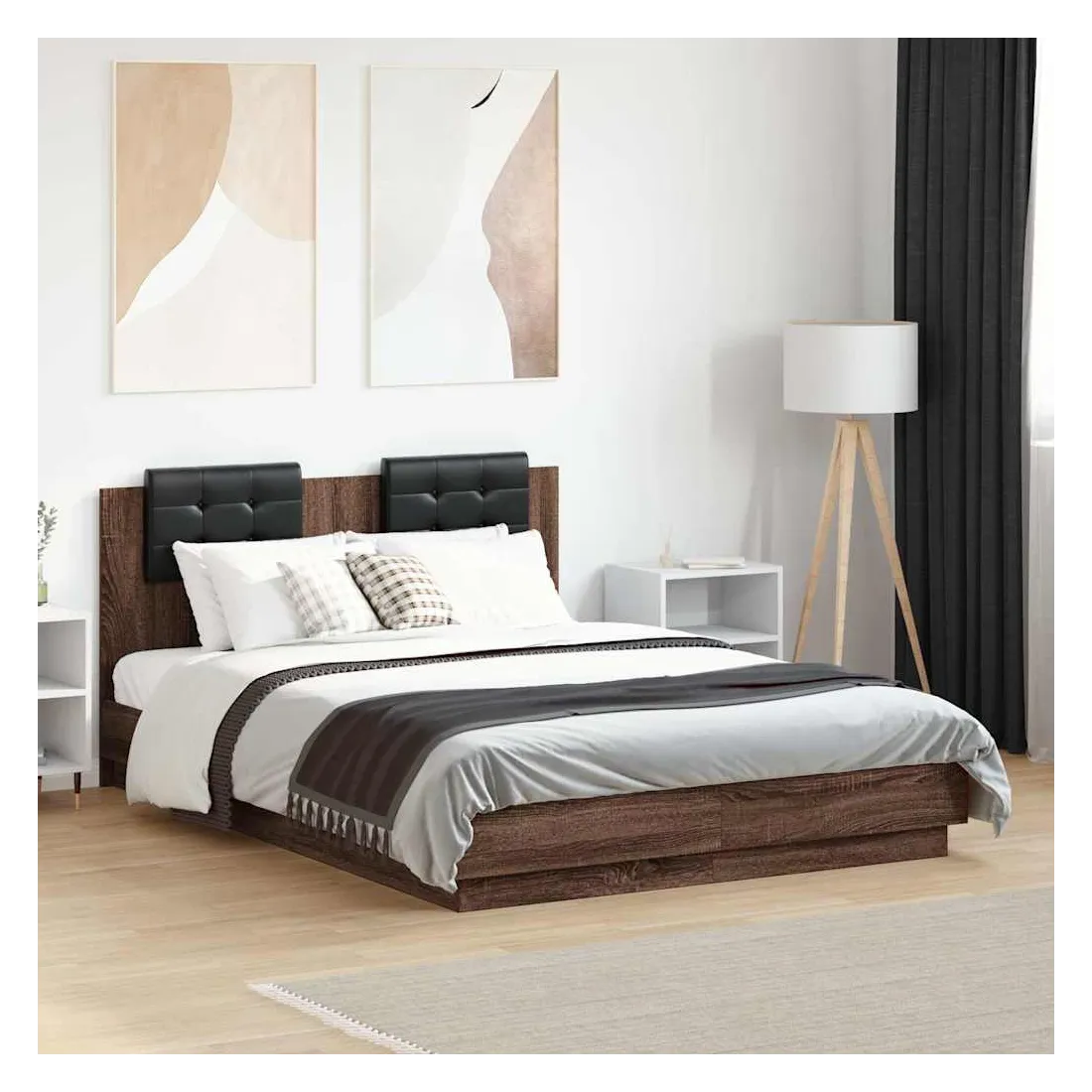 vidaXLObtenez une meilleure nuit de sommeil reposante grâce à ce cadre de lit avec tête de lit ! Il est un supplément accueillant à toute chambre à coucher. Matériau durable : le bois d'ingénierie est d'une qualité exceptionnelle avec une surface lisse et présente également résistance, stabilité et résistance à l'humidité.Lattes de contreplaqué : les lattes de contreplaqué assurent une bonne répartition du poids, garantissant que le matelas reste en place à chaque torsion de votre corps pendant le sommeil.Excellent soutien : l'oreiller de tête de lit est rembourré avec de la mousse pour un confort ultra doux et optimal vous offre un excellent soutien du dos lorsque vous êtes assis dans votre lit pour lire ou regarder la télévision. Bon à savoir :Un matelas n'est pas inclus avec ce lit. Nous offrons une sélection variée de matelas. Vous pouvez consulter notre boutique pour trouver un matelas assorti.