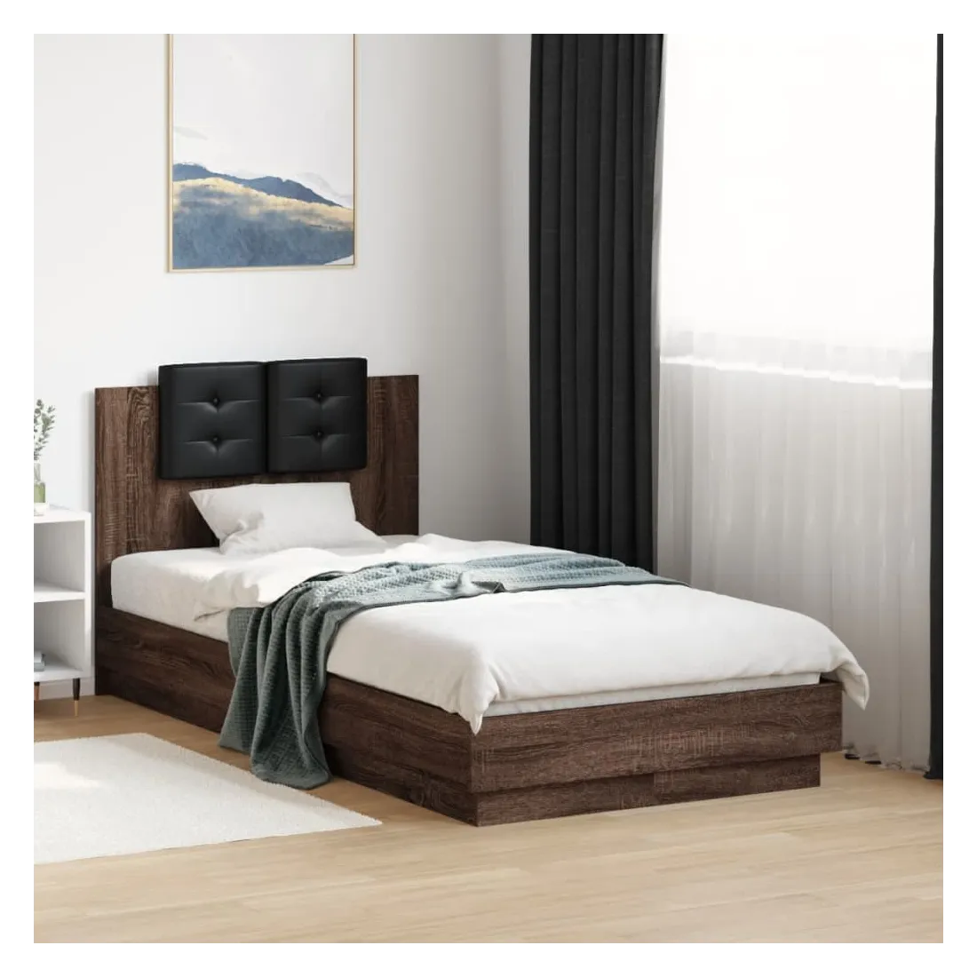Obtenez une meilleure nuit de sommeil reposante grâce à ce cadre de lit avec tête de lit ! Il est un supplément accueillant à toute chambre à coucher. Matériau durable : le bois d'ingénierie est d'une qualité exceptionnelle avec une surface lisse et présente également résistance, stabilité et résistance à l'humidité.Lattes de contreplaqué : les lattes de contreplaqué assurent une bonne répartition du poids, garantissant que le matelas reste en place à chaque torsion de votre corps pendant le sommeil.Excellent soutien : l'oreiller de tête de lit est rembourré avec de la mousse pour un confort ultra doux et optimal vous offre un excellent soutien du dos lorsque vous êtes assis dans votre lit pour lire ou regarder la télévision. Bon à savoir :Un matelas n'est pas inclus avec ce lit. Nous offrons une sélection variée de matelas. Vous pouvez consulter notre boutique pour trouver un matelas assorti.