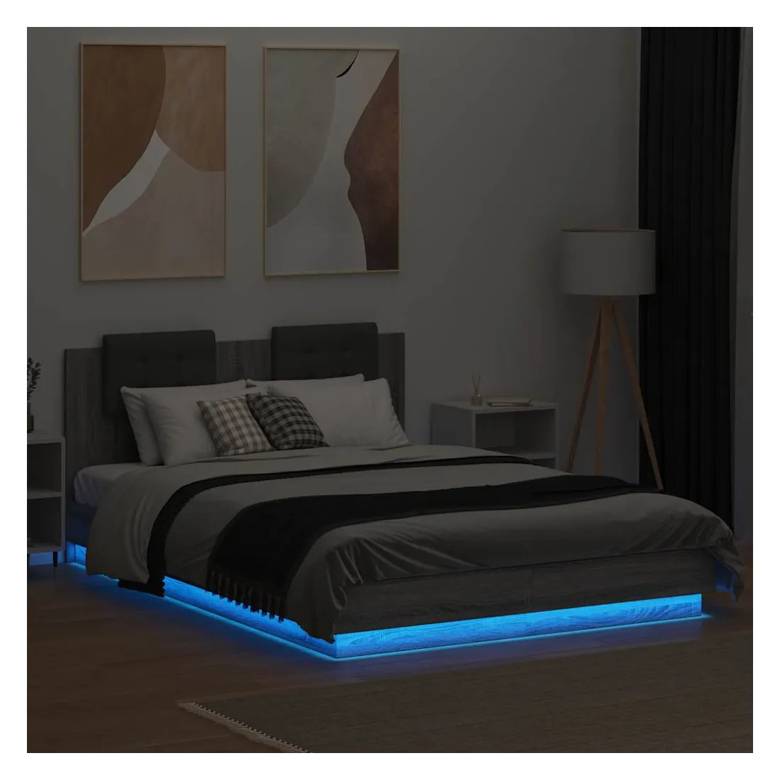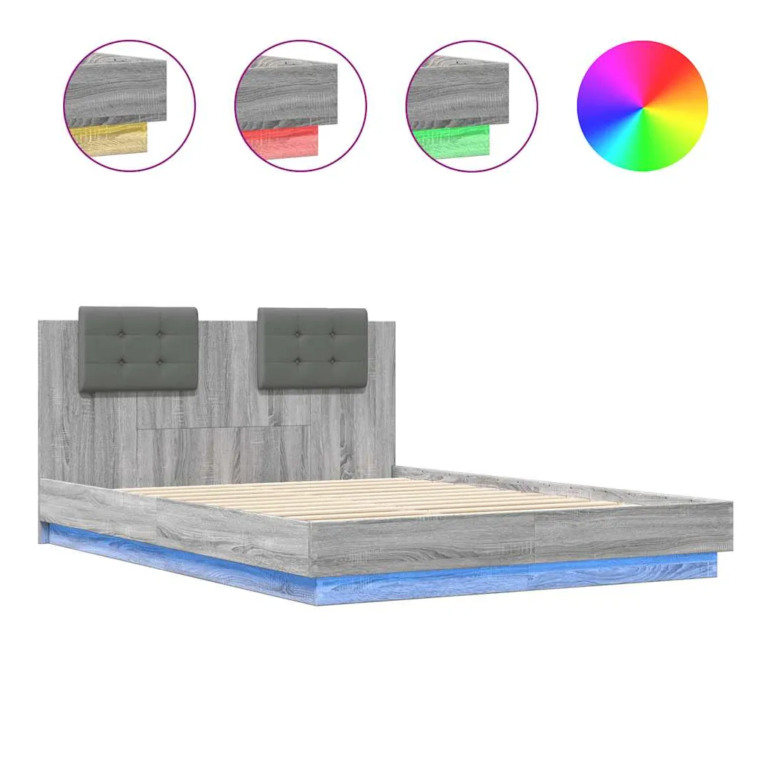 Cadre de lit avec LED sans matelas sonoma gris 150x200 cm