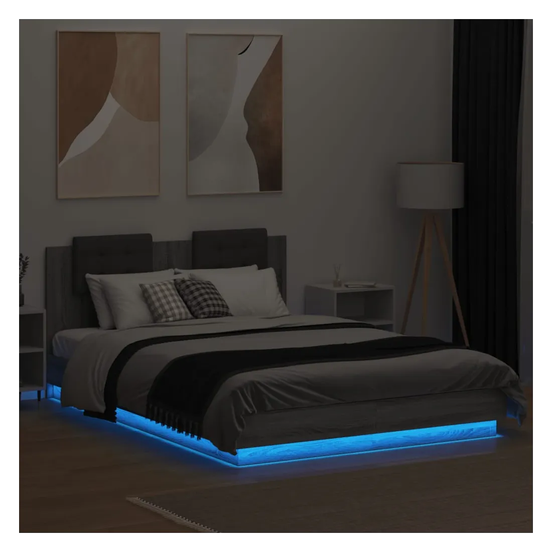 Obtenez une meilleure nuit de sommeil reposante grâce à ce cadre de lit avec tête de lit et lumières LED ! Il est un supplément accueillant à toute chambre à coucher. Matériau durable : le bois d'ingénierie est d'une qualité exceptionnelle avec une surface lisse et présente également résistance, stabilité et résistance à l'humidité.Lumières LED RVB : le cadre de lit est équipé de lumières LED RVB vibrantes. Avec divers menus personnalisables, vous pouvez changer sans effort la couleur des lumières et même les régler automatiquement. Ces lumières LED renforcent non seulement l'aspect contemporain du sommier, mais ajoutent également à son attrait tendance.Excellent soutien : la tête de lit vous offre un excellent soutien du dos lorsque vous êtes assis dans votre lit pour lire ou regarder la télévision.Lattes robustes : les lattes de contreplaqué assurent une bonne répartition du poids, garantissant que le matelas reste en place à chaque torsion de votre corps pendant le sommeil. Bon à savoir :Un matelas n'est pas inclus avec ce lit. Nous offrons une sélection variée de matelas. Vous pouvez consulter notre boutique pour trouver un matelas assorti.Ce produit est doté d'un connecteur USB qui nécessite une source d'alimentation USB de 5V certifiée (non incluse).