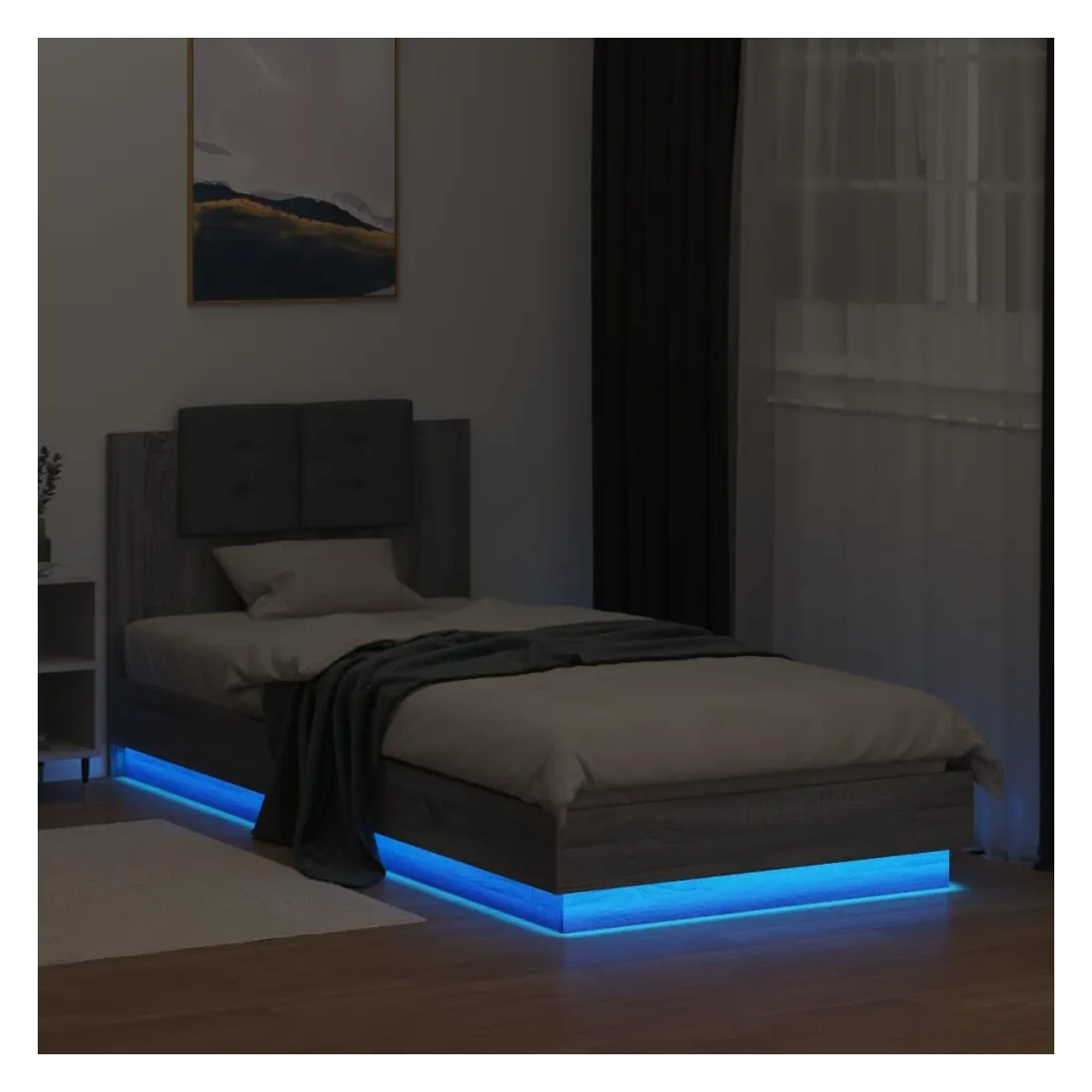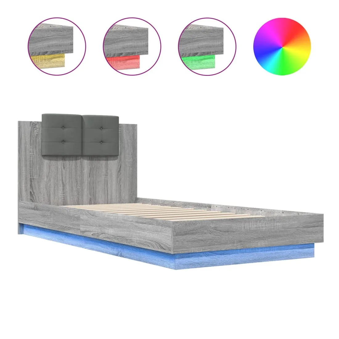 Obtenez une meilleure nuit de sommeil reposante grâce à ce cadre de lit avec tête de lit et lumières LED ! Il est un supplément accueillant à toute chambre à coucher. Matériau durable : le bois d'ingénierie est d'une qualité exceptionnelle avec une surface lisse et présente également résistance, stabilité et résistance à l'humidité.Lumières LED RVB : le cadre de lit est équipé de lumières LED RVB vibrantes. Avec divers menus personnalisables, vous pouvez changer sans effort la couleur des lumières et même les régler automatiquement. Ces lumières LED renforcent non seulement l'aspect contemporain du sommier, mais ajoutent également à son attrait tendance.Excellent soutien : la tête de lit vous offre un excellent soutien du dos lorsque vous êtes assis dans votre lit pour lire ou regarder la télévision.Lattes robustes : les lattes de contreplaqué assurent une bonne répartition du poids, garantissant que le matelas reste en place à chaque torsion de votre corps pendant le sommeil. Bon à savoir :Un matelas n'est pas inclus avec ce lit. Nous offrons une sélection variée de matelas. Vous pouvez consulter notre boutique pour trouver un matelas assorti.Ce produit est doté d'un connecteur USB qui nécessite une source d'alimentation USB de 5V certifiée (non incluse).
