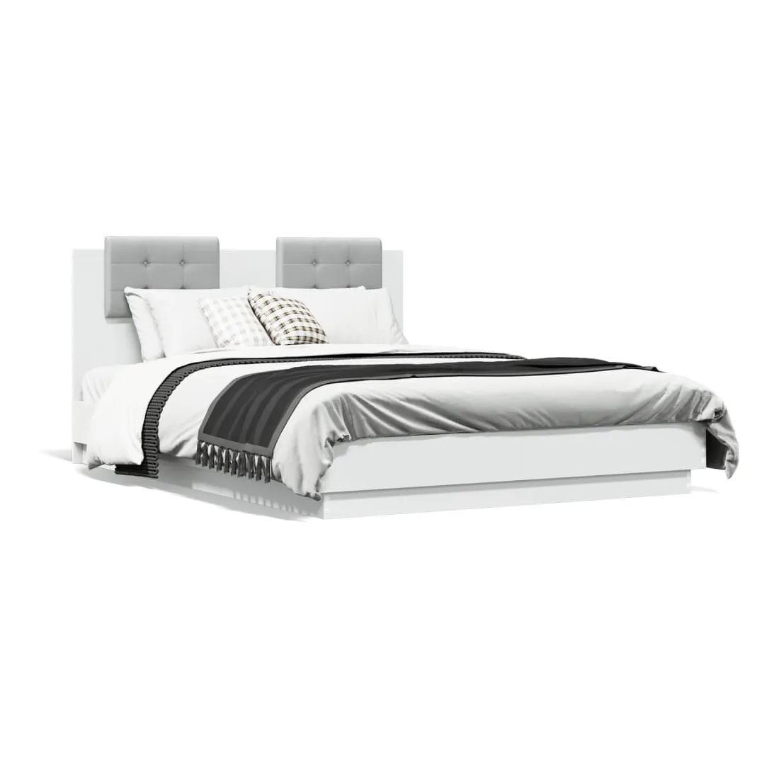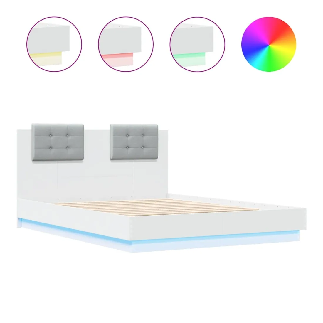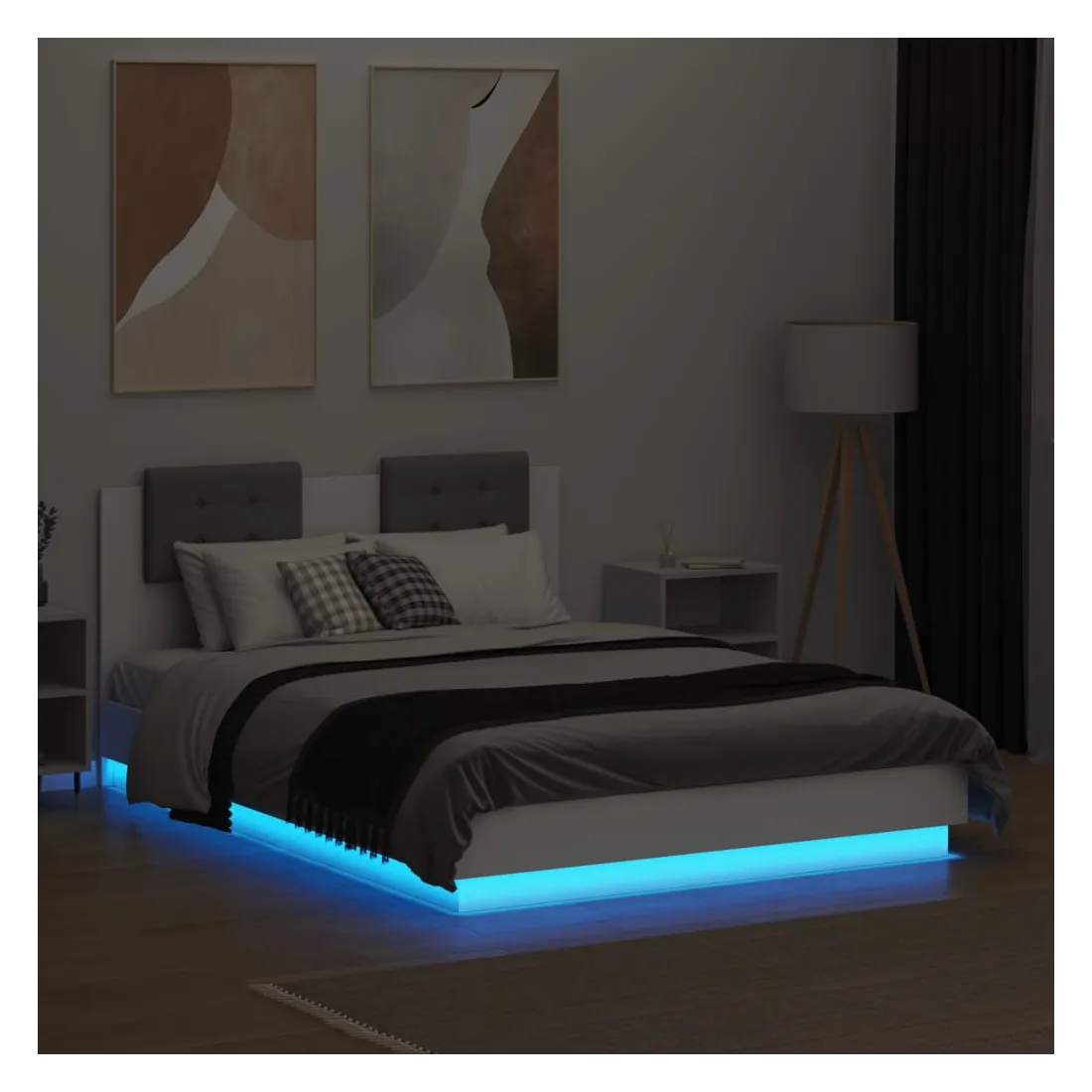 Cadre de lit avec LED sans matelas blanc 140x190 cm
