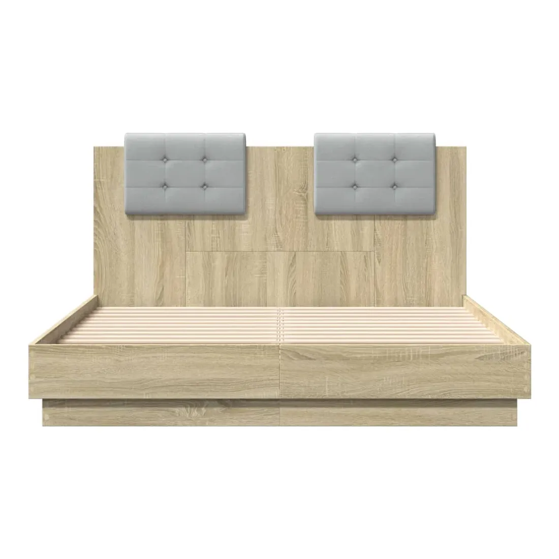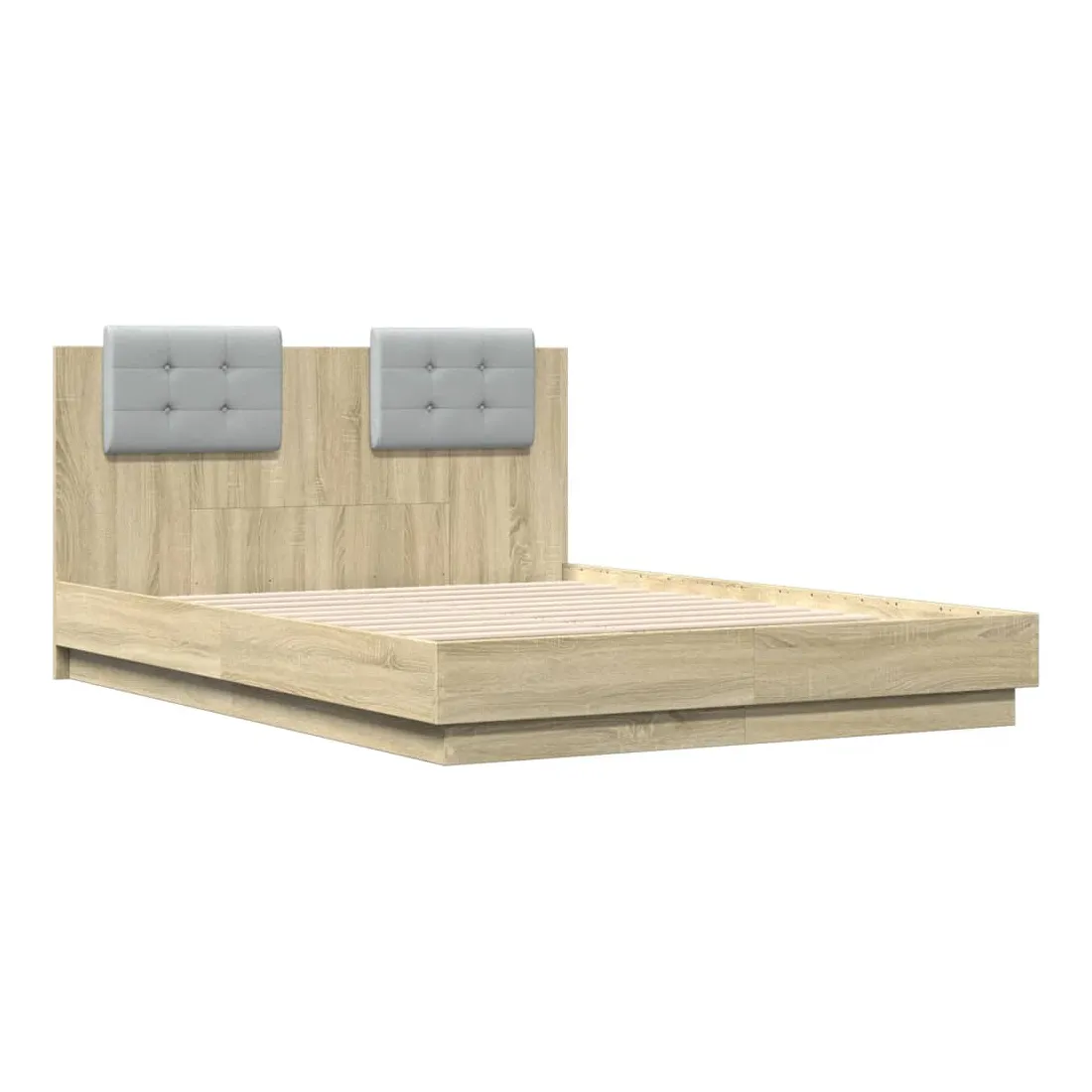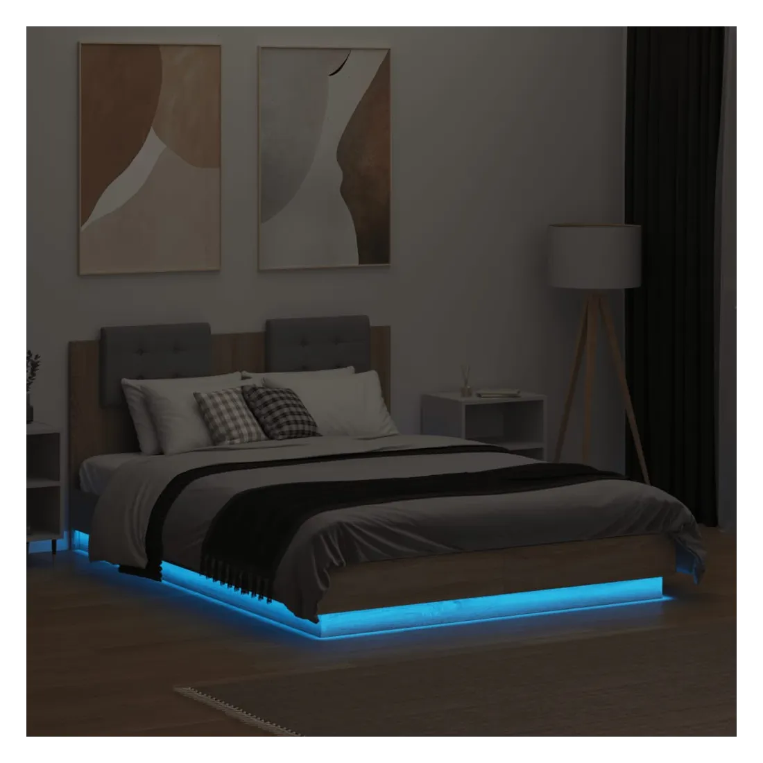 Obtenez une meilleure nuit de sommeil reposante grâce à ce cadre de lit avec tête de lit et lumières LED ! Il est un supplément accueillant à toute chambre à coucher. Matériau durable : le bois d'ingénierie est d'une qualité exceptionnelle avec une surface lisse et présente également résistance, stabilité et résistance à l'humidité.Lumières LED RVB : le cadre de lit est équipé de lumières LED RVB vibrantes. Avec divers menus personnalisables, vous pouvez changer sans effort la couleur des lumières et même les régler automatiquement. Ces lumières LED renforcent non seulement l'aspect contemporain du sommier, mais ajoutent également à son attrait tendance.Excellent soutien : la tête de lit vous offre un excellent soutien du dos lorsque vous êtes assis dans votre lit pour lire ou regarder la télévision.Lattes robustes : les lattes de contreplaqué assurent une bonne répartition du poids, garantissant que le matelas reste en place à chaque torsion de votre corps pendant le sommeil. Bon à savoir :Un matelas n'est pas inclus avec ce lit. Nous offrons une sélection variée de matelas. Vous pouvez consulter notre boutique pour trouver un matelas assorti.Ce produit est doté d'un connecteur USB qui nécessite une source d'alimentation USB de 5V certifiée (non incluse).