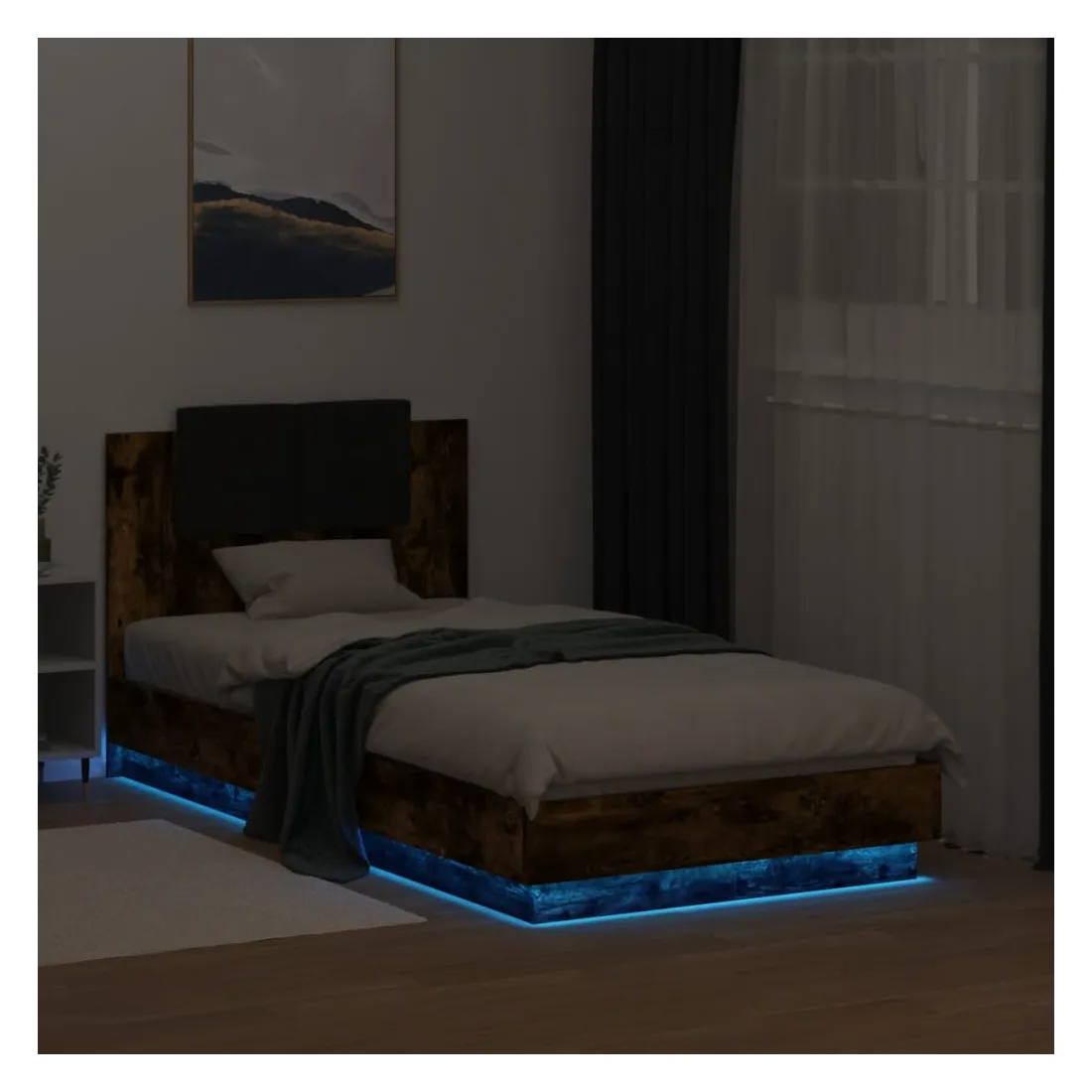 Obtenez une meilleure nuit de sommeil reposante grâce à ce cadre de lit avec tête de lit et lumières LED ! Il est un supplément accueillant à toute chambre à coucher. Matériau durable : le bois d'ingénierie est d'une qualité exceptionnelle avec une surface lisse et présente également résistance, stabilité et résistance à l'humidité.Lumières LED RVB : le cadre de lit est équipé de lumières LED RVB vibrantes. Avec divers menus personnalisables, vous pouvez changer sans effort la couleur des lumières et même les régler automatiquement. Ces lumières LED renforcent non seulement l'aspect contemporain du sommier, mais ajoutent également à son attrait tendance.Excellent soutien : la tête de lit vous offre un excellent soutien du dos lorsque vous êtes assis dans votre lit pour lire ou regarder la télévision.Lattes robustes : les lattes de contreplaqué assurent une bonne répartition du poids, garantissant que le matelas reste en place à chaque torsion de votre corps pendant le sommeil. Bon à savoir :Un matelas n'est pas inclus avec ce lit. Nous offrons une sélection variée de matelas. Vous pouvez consulter notre boutique pour trouver un matelas assorti.Ce produit est doté d'un connecteur USB qui nécessite une source d'alimentation USB de 5V certifiée (non incluse).
