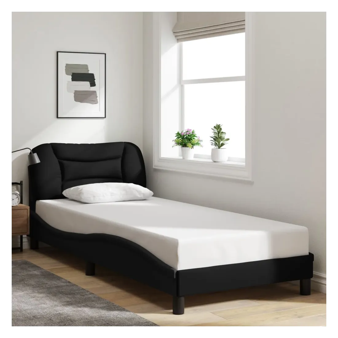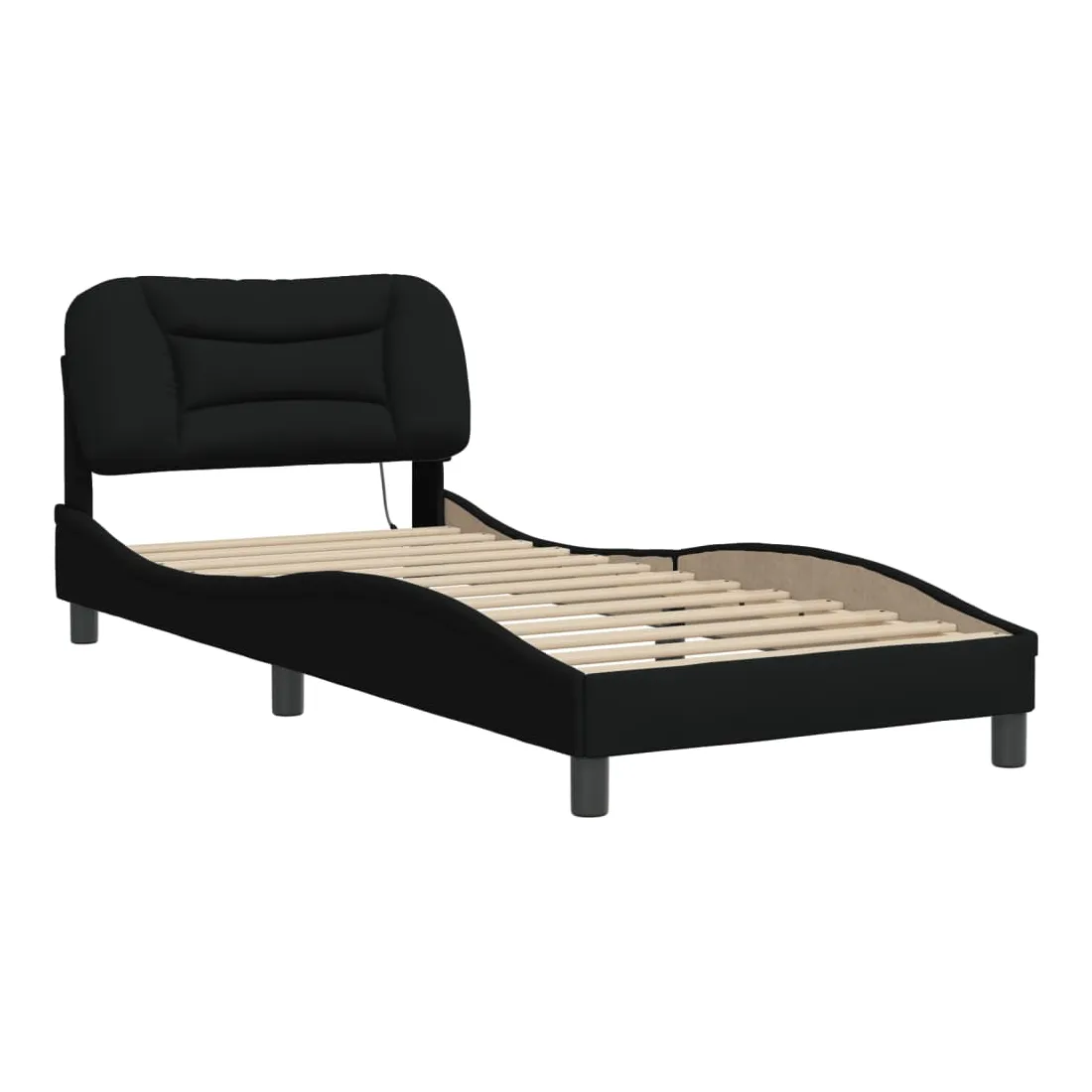 Obtenez une meilleure nuit de sommeil reposante grâce à ce cadre de lit avec lumières LED ! Il est un supplément accueillant à toute chambre à coucher. Tissu durable : le tissu présente un aspect simple et épuré, et il est respirant et durable.Lattes de contreplaqué : les lattes de contreplaqué assurent une bonne répartition du poids, garantissant que le matelas reste en place à chaque torsion de votre corps pendant le sommeil.Excellent soutien : la tête de lit vous offre un excellent soutien du dos lorsque vous êtes assis dans votre lit pour lire ou regarder la télévision.Bande LED colorée : apportez de la gaieté dans l'obscurité avec des lumières LED colorées ! Les bandes auto-agrippantes situées à l'arrière du coussin de la tête de lit peuvent être utilisées pour fixer les lumières LED.Design latéral ondulé : l’aspect ondulé du cadre de lit est élégant et sophistiqué, ajoutant une touche moderne et élégante à votre décor, ce qui en fait le point central de votre chambre à coucher. Bon à savoir :Un matelas n'est pas inclus avec ce lit. Nous offrons une sélection variée de matelas. Vous pouvez consulter notre boutique pour trouver un matelas assorti.Ce produit est doté d'un connecteur USB qui nécessite une source d'alimentation USB de 5V certifiée (non incluse).