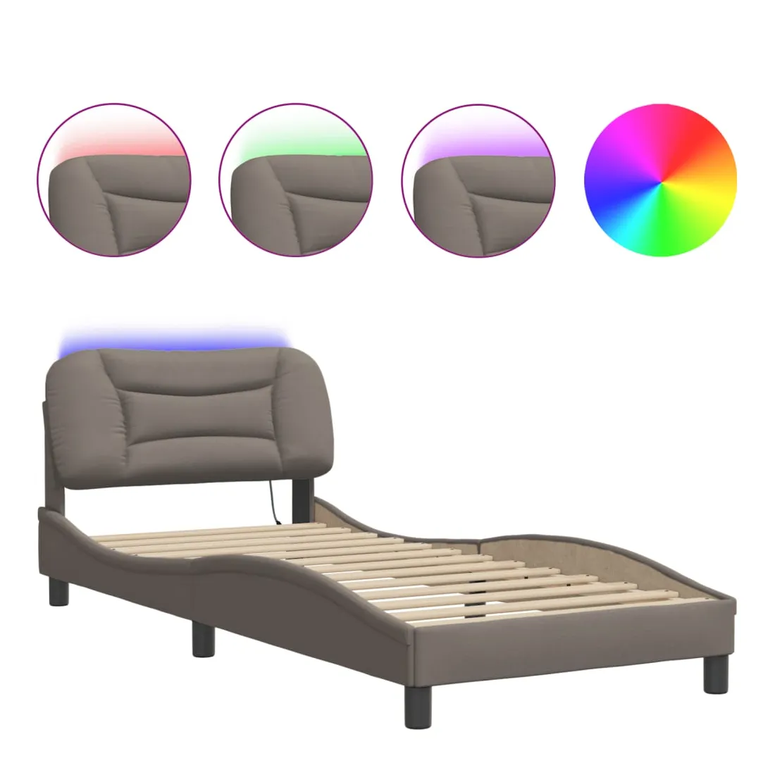 Cadre de lit avec LED sans matelas Hvar taupe 90x200 cm tissu