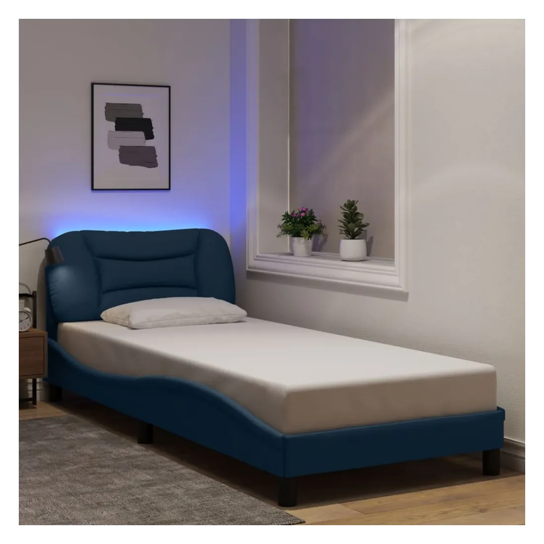 Obtenez une meilleure nuit de sommeil reposante grâce à ce cadre de lit avec lumières LED ! Il est un supplément accueillant à toute chambre à coucher. Tissu durable : le tissu présente un aspect simple et épuré, et il est respirant et durable.Lattes de contreplaqué : les lattes de contreplaqué assurent une bonne répartition du poids, garantissant que le matelas reste en place à chaque torsion de votre corps pendant le sommeil.Excellent soutien : la tête de lit vous offre un excellent soutien du dos lorsque vous êtes assis dans votre lit pour lire ou regarder la télévision.Bande LED colorée : apportez de la gaieté dans l'obscurité avec des lumières LED colorées ! Les bandes auto-agrippantes situées à l'arrière du coussin de la tête de lit peuvent être utilisées pour fixer les lumières LED.Design latéral ondulé : l’aspect ondulé du cadre de lit est élégant et sophistiqué, ajoutant une touche moderne et élégante à votre décor, ce qui en fait le point central de votre chambre à coucher. Bon à savoir :Un matelas n'est pas inclus avec ce lit. Nous offrons une sélection variée de matelas. Vous pouvez consulter notre boutique pour trouver un matelas assorti.Ce produit est doté d'un connecteur USB qui nécessite une source d'alimentation USB de 5V certifiée (non incluse).