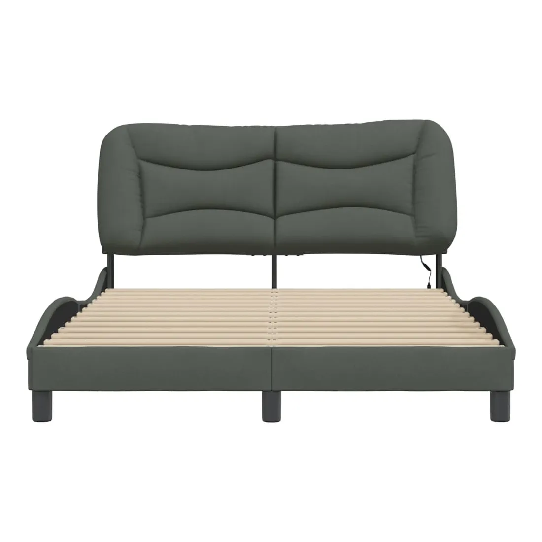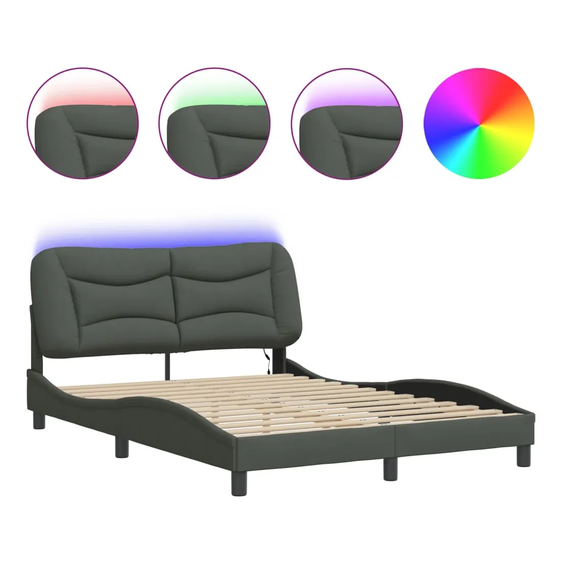 Obtenez une meilleure nuit de sommeil reposante grâce à ce cadre de lit avec lumières LED ! Il est un supplément accueillant à toute chambre à coucher. Tissu durable : le tissu présente un aspect simple et épuré, et il est respirant et durable.Lattes de contreplaqué : les lattes de contreplaqué assurent une bonne répartition du poids, garantissant que le matelas reste en place à chaque torsion de votre corps pendant le sommeil.Excellent soutien : la tête de lit vous offre un excellent soutien du dos lorsque vous êtes assis dans votre lit pour lire ou regarder la télévision.Bande LED colorée : apportez de la gaieté dans l'obscurité avec des lumières LED colorées ! Les bandes auto-agrippantes situées à l'arrière du coussin de la tête de lit peuvent être utilisées pour fixer les lumières LED.Design latéral ondulé : l’aspect ondulé du cadre de lit est élégant et sophistiqué, ajoutant une touche moderne et élégante à votre décor, ce qui en fait le point central de votre chambre à coucher. Bon à savoir :Un matelas n'est pas inclus avec ce lit. Nous offrons une sélection variée de matelas. Vous pouvez consulter notre boutique pour trouver un matelas assorti.Ce produit est doté d'un connecteur USB qui nécessite une source d'alimentation USB de 5V certifiée (non incluse).