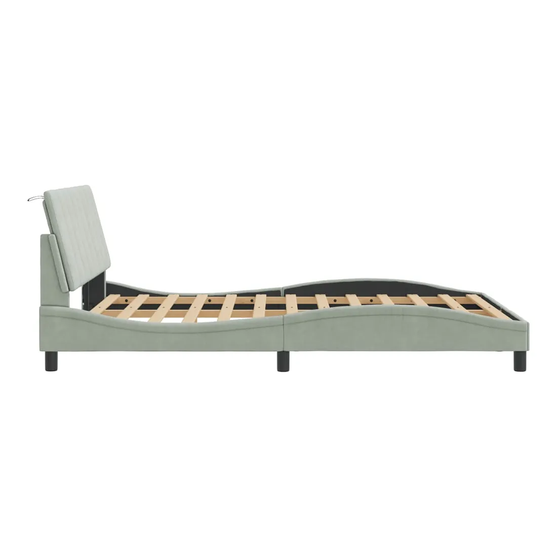 Obtenez une meilleure nuit de sommeil reposante grâce à ce cadre de lit avec lumières LED ! Il est un supplément accueillant à toute chambre à coucher. Velours doux : le velours est un tissu doux et confortable, agréable au toucher.Lattes de contreplaqué : les lattes de contreplaqué assurent une bonne répartition du poids, garantissant que le matelas reste en place à chaque torsion de votre corps pendant le sommeil.Excellent soutien : la tête de lit vous offre un excellent soutien du dos lorsque vous êtes assis dans votre lit pour lire ou regarder la télévision.Bande LED colorée : apportez de la gaieté dans l'obscurité avec des lumières LED colorées ! Les bandes auto-agrippantes situées à l'arrière du coussin de la tête de lit peuvent être utilisées pour fixer les lumières LED.Design latéral ondulé : l’aspect ondulé du cadre de lit est élégant et sophistiqué, ajoutant une touche moderne et élégante à votre décor, ce qui en fait le point central de votre chambre à coucher. Bon à savoir :Un matelas n'est pas inclus avec ce lit. Nous offrons une sélection variée de matelas. Vous pouvez consulter notre boutique pour trouver un matelas assorti.Ce produit est doté d'un connecteur USB qui nécessite une source d'alimentation USB de 5V certifiée (non incluse).