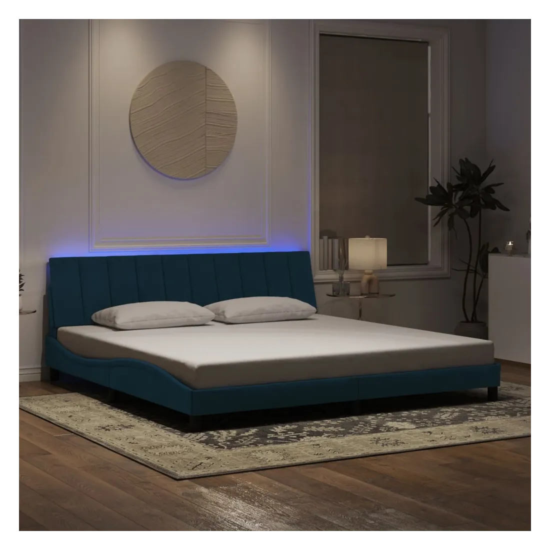 Obtenez une meilleure nuit de sommeil reposante grâce à ce cadre de lit avec lumières LED ! Il est un supplément accueillant à toute chambre à coucher. Velours doux : le velours est un tissu doux et confortable, agréable au toucher.Lattes de contreplaqué : les lattes de contreplaqué assurent une bonne répartition du poids, garantissant que le matelas reste en place à chaque torsion de votre corps pendant le sommeil.Excellent soutien : la tête de lit vous offre un excellent soutien du dos lorsque vous êtes assis dans votre lit pour lire ou regarder la télévision.Bande LED colorée : apportez de la gaieté dans l'obscurité avec des lumières LED colorées ! Les bandes auto-agrippantes situées à l'arrière du coussin de la tête de lit peuvent être utilisées pour fixer les lumières LED.Design latéral ondulé : l’aspect ondulé du cadre de lit est élégant et sophistiqué, ajoutant une touche moderne et élégante à votre décor, ce qui en fait le point central de votre chambre à coucher. Bon à savoir :Un matelas n'est pas inclus avec ce lit. Nous offrons une sélection variée de matelas. Vous pouvez consulter notre boutique pour trouver un matelas assorti.Ce produit est doté d'un connecteur USB qui nécessite une source d'alimentation USB de 5V certifiée (non incluse).