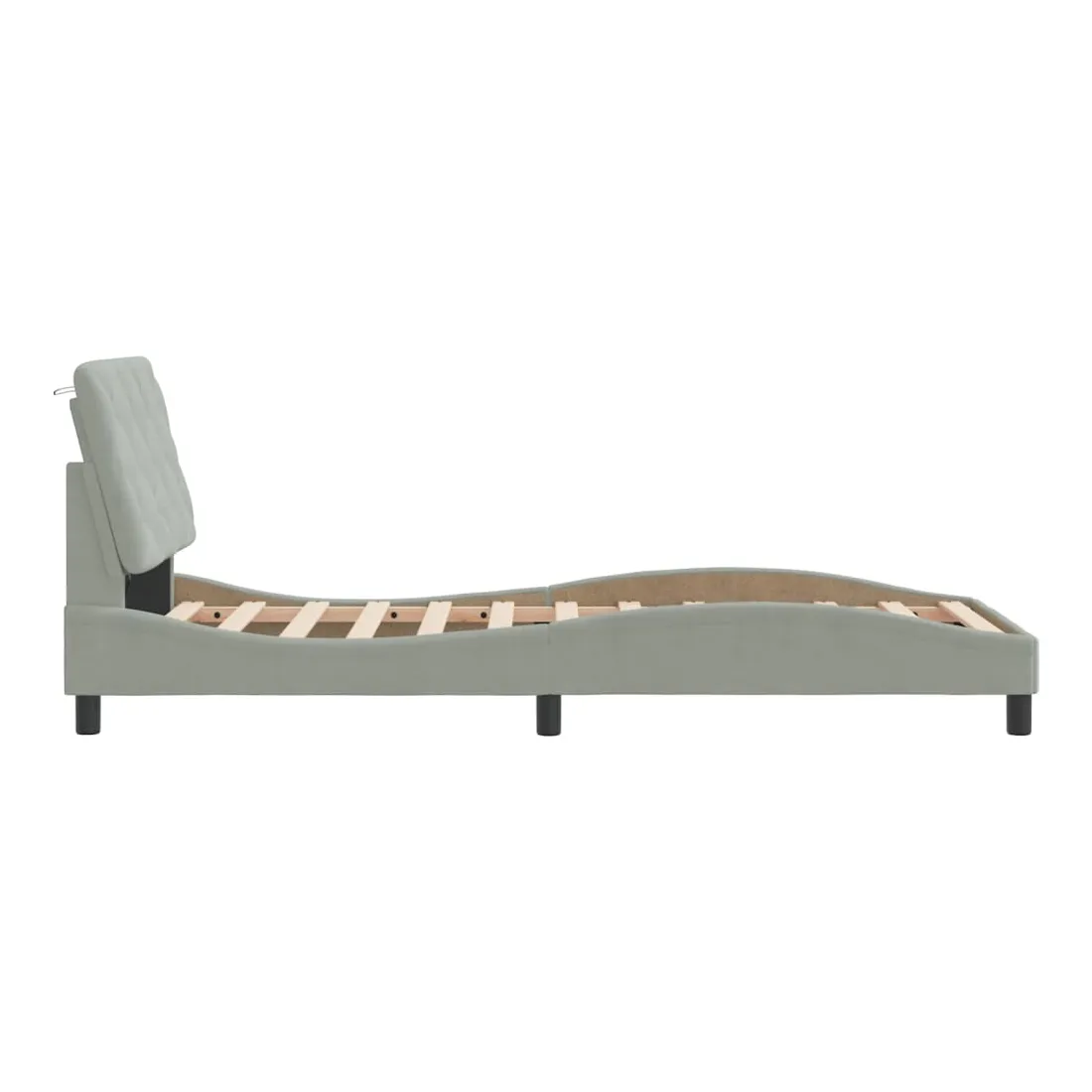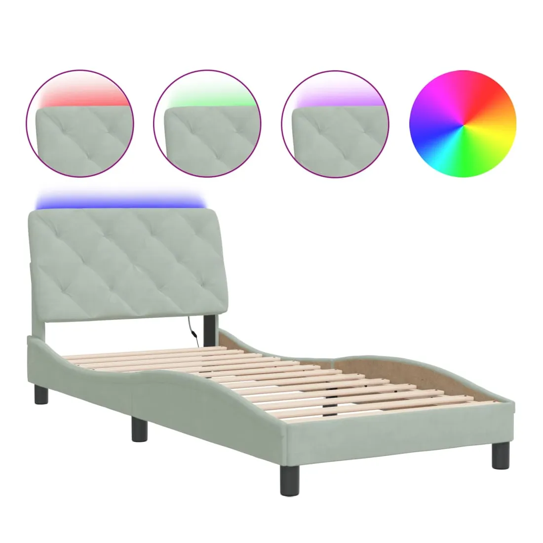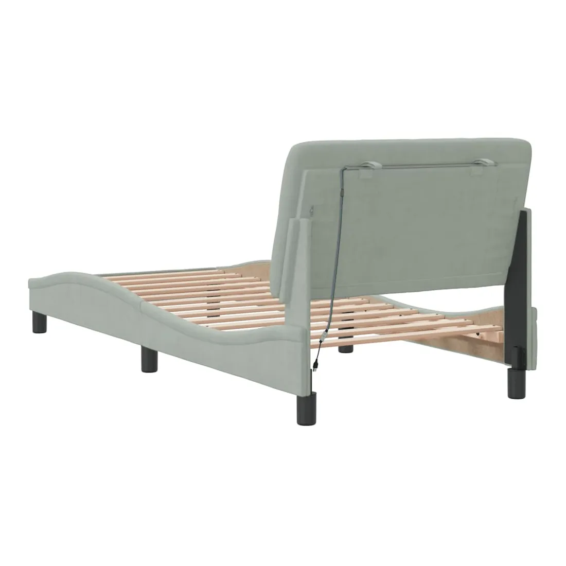 Obtenez une meilleure nuit de sommeil reposante grâce à ce cadre de lit avec lumières LED ! Il est un supplément accueillant à toute chambre à coucher. Velours doux : le velours est un tissu doux et confortable, agréable au toucher. Lattes de contreplaqué : les lattes de contreplaqué assurent une bonne répartition du poids, garantissant que le matelas reste en place à chaque torsion de votre corps pendant le sommeil. Excellent soutien : l'oreiller de tête de lit est rembourré avec de la mousse pour un confort ultra doux et optimal vous offre un excellent soutien du dos lorsque vous êtes assis dans votre lit pour lire ou regarder la télévision. Bande LED colorée : apportez de la gaieté dans l'obscurité avec des lumières LED colorées ! Les bandes auto-agrippantes situées à l'arrière du coussin de la tête de lit peuvent être utilisées pour fixer les lumières LED. Design latéral ondulé : l’aspect ondulé du cadre de lit est élégant et sophistiqué, ajoutant une touche moderne et élégante à votre décor, ce qui en fait le point central de votre chambre à coucher. Bon à savoir :Un matelas n'est pas inclus avec ce lit. Nous offrons une sélection variée de matelas. Vous pouvez consulter notre boutique pour trouver un matelas assorti.Ce produit est doté d'un connecteur USB qui nécessite une source d'alimentation USB de 5V certifiée (non incluse).