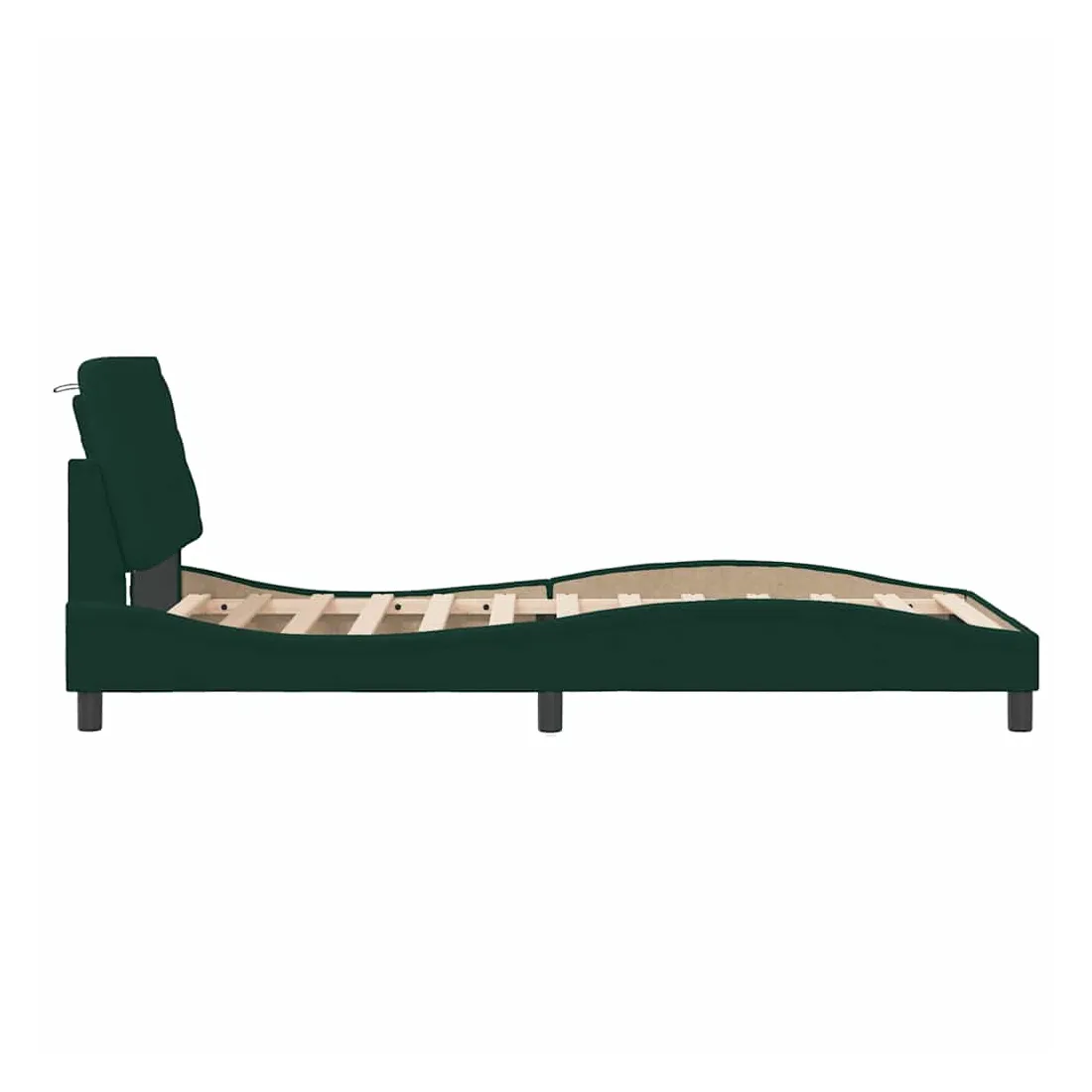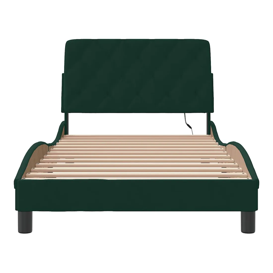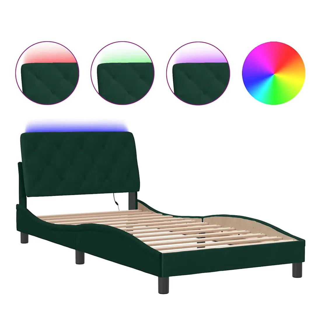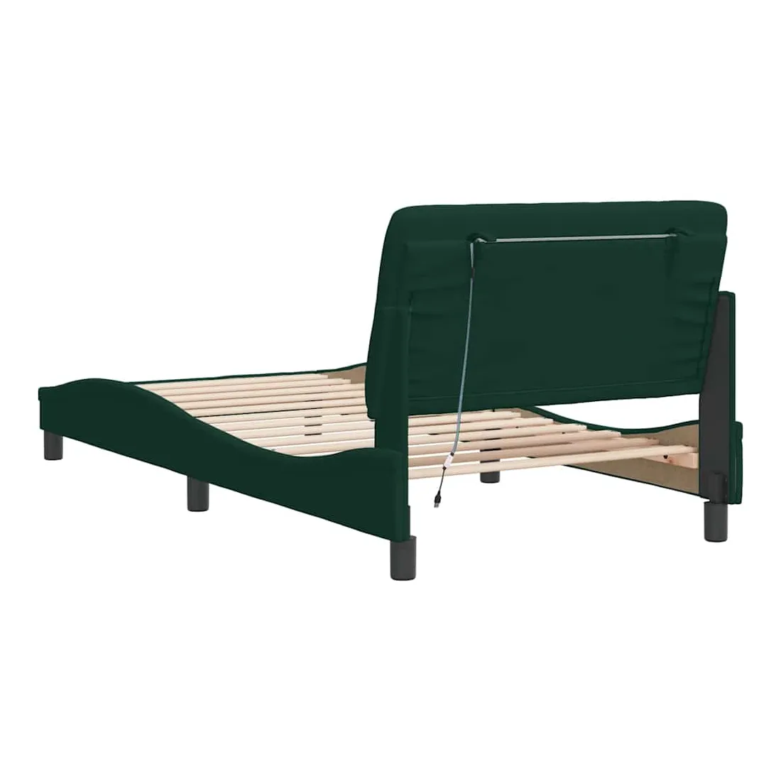 Obtenez une meilleure nuit de sommeil reposante grâce à ce cadre de lit avec lumières LED ! Il est un supplément accueillant à toute chambre à coucher. Velours doux : le velours est un tissu doux et confortable, agréable au toucher. Lattes de contreplaqué : les lattes de contreplaqué assurent une bonne répartition du poids, garantissant que le matelas reste en place à chaque torsion de votre corps pendant le sommeil. Excellent soutien : l'oreiller de tête de lit est rembourré avec de la mousse pour un confort ultra doux et optimal vous offre un excellent soutien du dos lorsque vous êtes assis dans votre lit pour lire ou regarder la télévision. Bande LED colorée : apportez de la gaieté dans l'obscurité avec des lumières LED colorées ! Les bandes auto-agrippantes situées à l'arrière du coussin de la tête de lit peuvent être utilisées pour fixer les lumières LED. Design latéral ondulé : l’aspect ondulé du cadre de lit est élégant et sophistiqué, ajoutant une touche moderne et élégante à votre décor, ce qui en fait le point central de votre chambre à coucher. Bon à savoir :Un matelas n'est pas inclus avec ce lit. Nous offrons une sélection variée de matelas. Vous pouvez consulter notre boutique pour trouver un matelas assorti.Ce produit est doté d'un connecteur USB qui nécessite une source d'alimentation USB de 5V certifiée (non incluse).