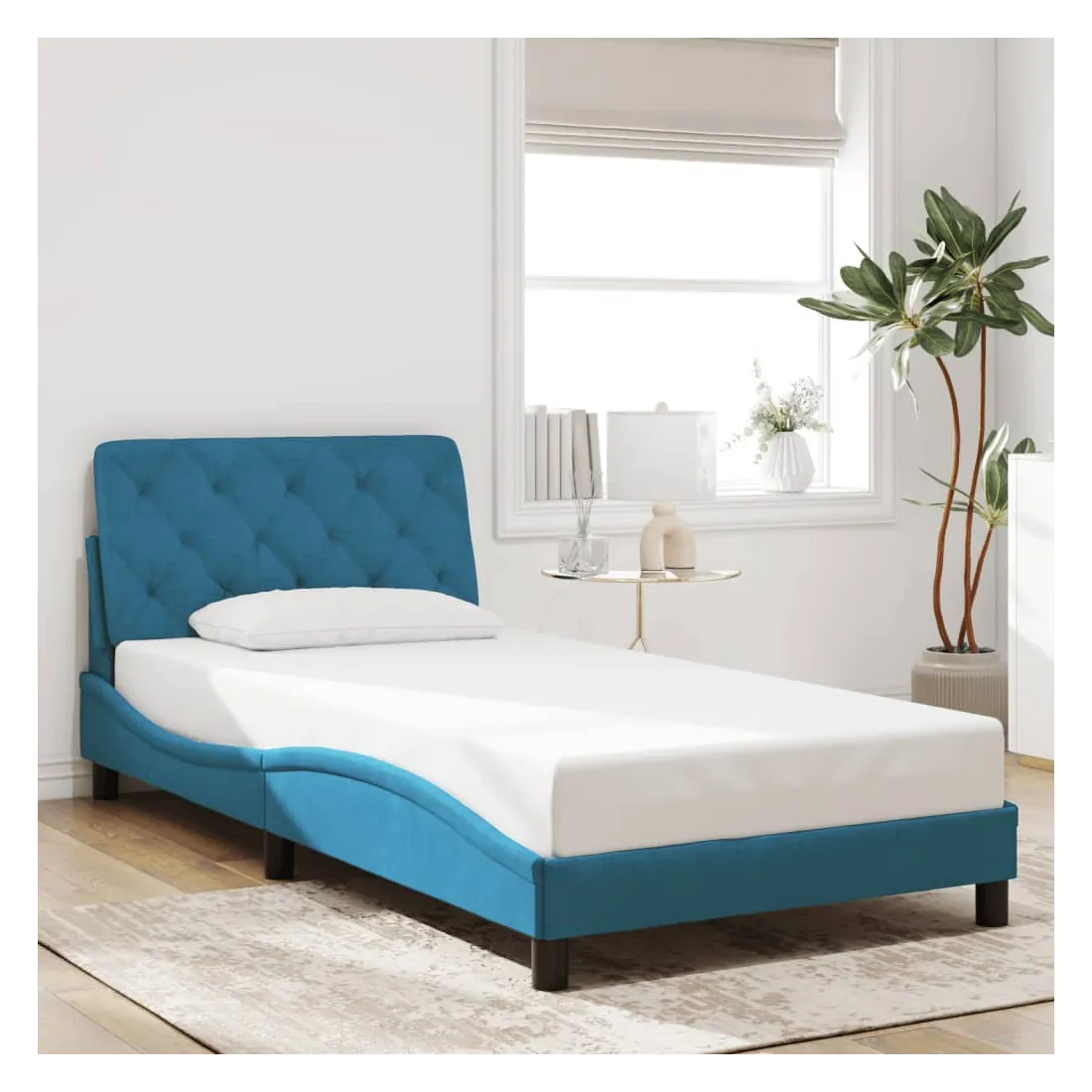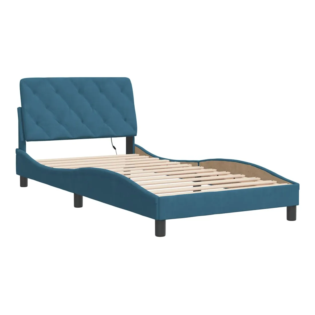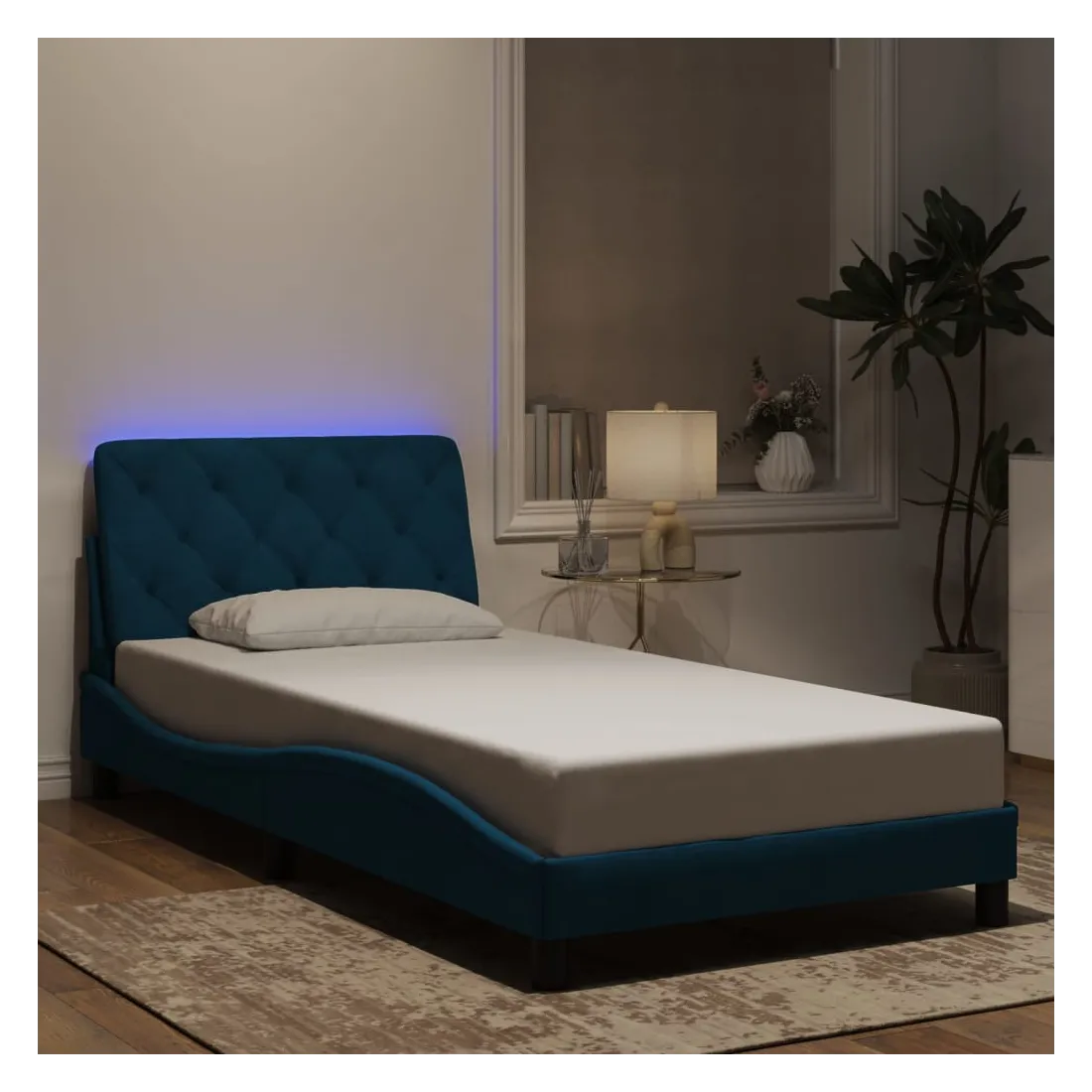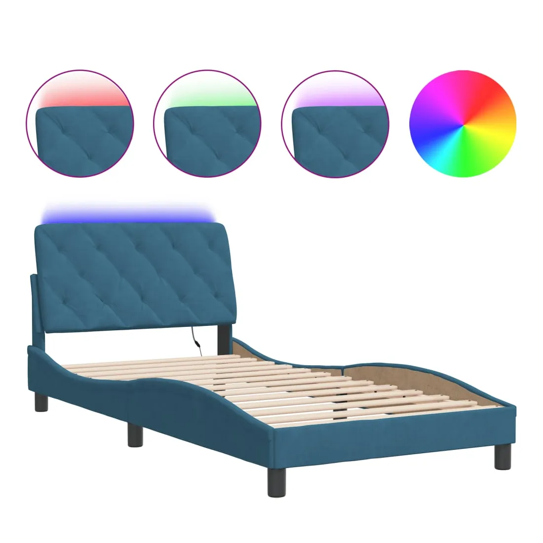 Obtenez une meilleure nuit de sommeil reposante grâce à ce cadre de lit avec lumières LED ! Il est un supplément accueillant à toute chambre à coucher. Velours doux : le velours est un tissu doux et confortable, agréable au toucher. Lattes de contreplaqué : les lattes de contreplaqué assurent une bonne répartition du poids, garantissant que le matelas reste en place à chaque torsion de votre corps pendant le sommeil. Excellent soutien : l'oreiller de tête de lit est rembourré avec de la mousse pour un confort ultra doux et optimal vous offre un excellent soutien du dos lorsque vous êtes assis dans votre lit pour lire ou regarder la télévision. Bande LED colorée : apportez de la gaieté dans l'obscurité avec des lumières LED colorées ! Les bandes auto-agrippantes situées à l'arrière du coussin de la tête de lit peuvent être utilisées pour fixer les lumières LED. Design latéral ondulé : l’aspect ondulé du cadre de lit est élégant et sophistiqué, ajoutant une touche moderne et élégante à votre décor, ce qui en fait le point central de votre chambre à coucher. Bon à savoir :Un matelas n'est pas inclus avec ce lit. Nous offrons une sélection variée de matelas. Vous pouvez consulter notre boutique pour trouver un matelas assorti.Ce produit est doté d'un connecteur USB qui nécessite une source d'alimentation USB de 5V certifiée (non incluse).