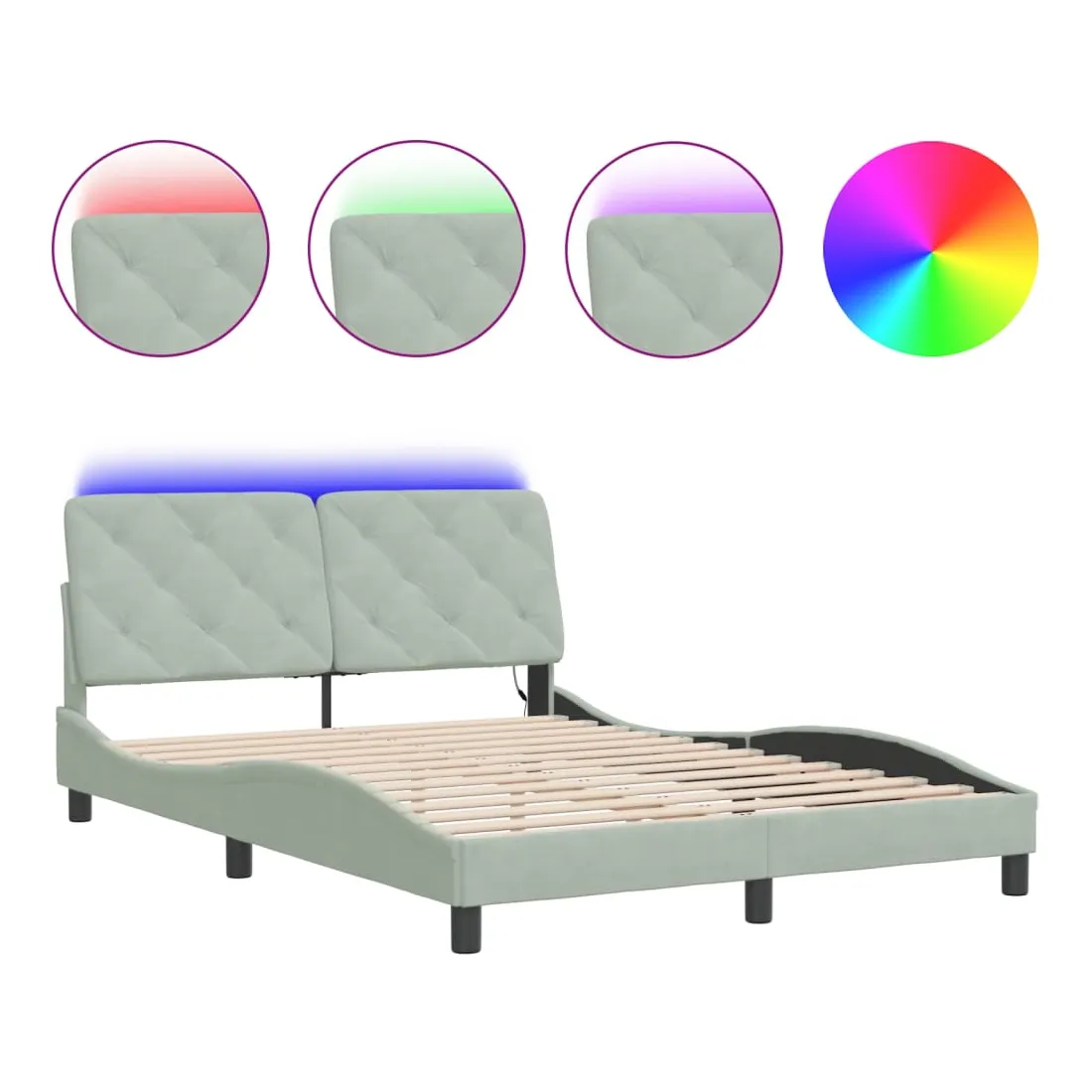 Obtenez une meilleure nuit de sommeil reposante grâce à ce cadre de lit avec lumières LED ! Il est un supplément accueillant à toute chambre à coucher. Velours doux : le velours est un tissu doux et confortable, agréable au toucher. Lattes de contreplaqué : les lattes de contreplaqué assurent une bonne répartition du poids, garantissant que le matelas reste en place à chaque torsion de votre corps pendant le sommeil. Excellent soutien : l'oreiller de tête de lit est rembourré avec de la mousse pour un confort ultra doux et optimal vous offre un excellent soutien du dos lorsque vous êtes assis dans votre lit pour lire ou regarder la télévision. Bande LED colorée : apportez de la gaieté dans l'obscurité avec des lumières LED colorées ! Les bandes auto-agrippantes situées à l'arrière du coussin de la tête de lit peuvent être utilisées pour fixer les lumières LED. Design latéral ondulé : l’aspect ondulé du cadre de lit est élégant et sophistiqué, ajoutant une touche moderne et élégante à votre décor, ce qui en fait le point central de votre chambre à coucher. Bon à savoir :Un matelas n'est pas inclus avec ce lit. Nous offrons une sélection variée de matelas. Vous pouvez consulter notre boutique pour trouver un matelas assorti.Ce produit est doté d'un connecteur USB qui nécessite une source d'alimentation USB de 5V certifiée (non incluse).