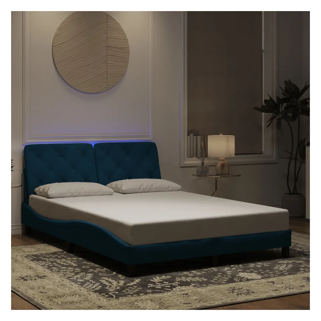 Obtenez une meilleure nuit de sommeil reposante grâce à ce cadre de lit avec lumières LED ! Il est un supplément accueillant à toute chambre à coucher. Velours doux : le velours est un tissu doux et confortable, agréable au toucher. Lattes de contreplaqué : les lattes de contreplaqué assurent une bonne répartition du poids, garantissant que le matelas reste en place à chaque torsion de votre corps pendant le sommeil. Excellent soutien : l'oreiller de tête de lit est rembourré avec de la mousse pour un confort ultra doux et optimal vous offre un excellent soutien du dos lorsque vous êtes assis dans votre lit pour lire ou regarder la télévision. Bande LED colorée : apportez de la gaieté dans l'obscurité avec des lumières LED colorées ! Les bandes auto-agrippantes situées à l'arrière du coussin de la tête de lit peuvent être utilisées pour fixer les lumières LED. Design latéral ondulé : l’aspect ondulé du cadre de lit est élégant et sophistiqué, ajoutant une touche moderne et élégante à votre décor, ce qui en fait le point central de votre chambre à coucher. Bon à savoir :Un matelas n'est pas inclus avec ce lit. Nous offrons une sélection variée de matelas. Vous pouvez consulter notre boutique pour trouver un matelas assorti.Ce produit est doté d'un connecteur USB qui nécessite une source d'alimentation USB de 5V certifiée (non incluse).