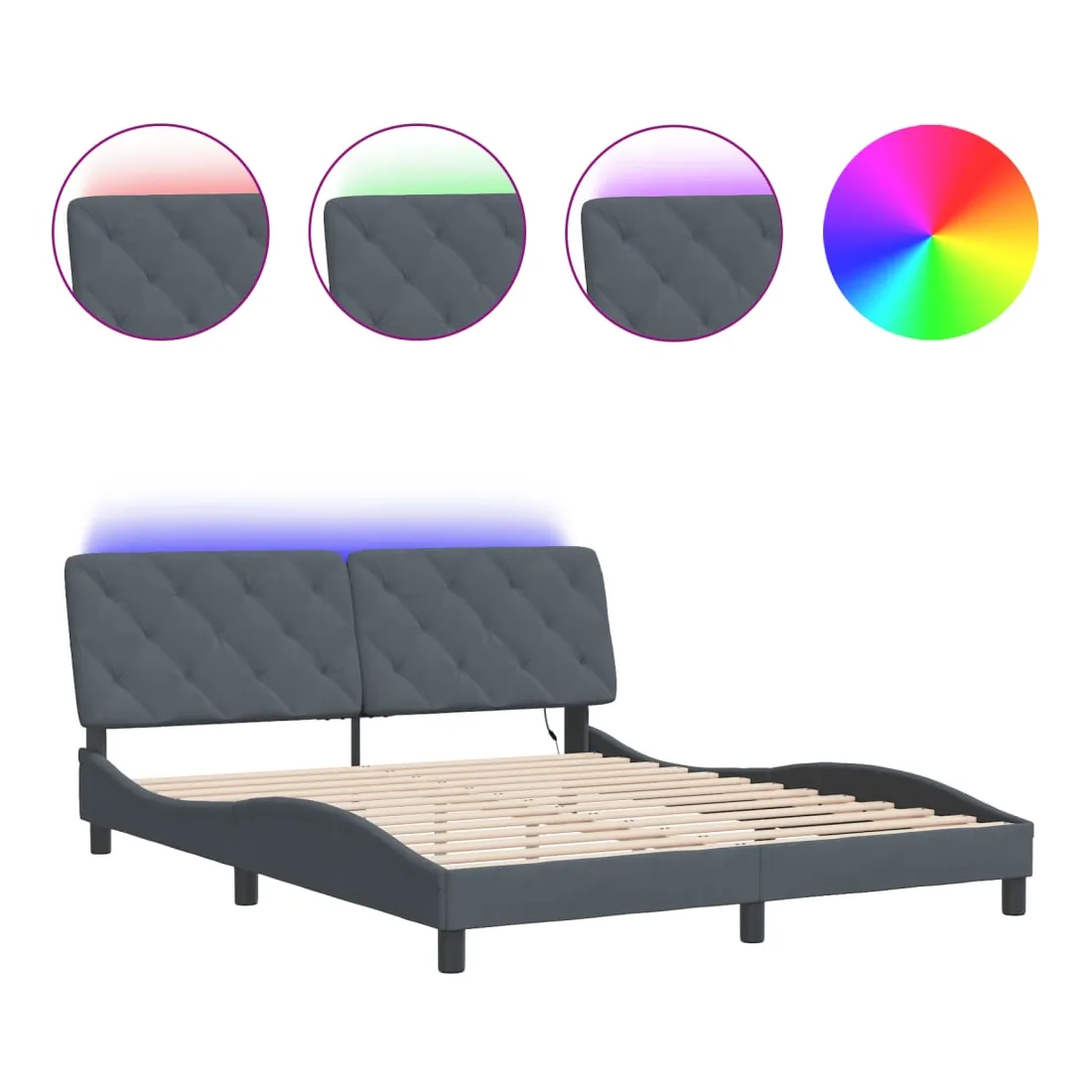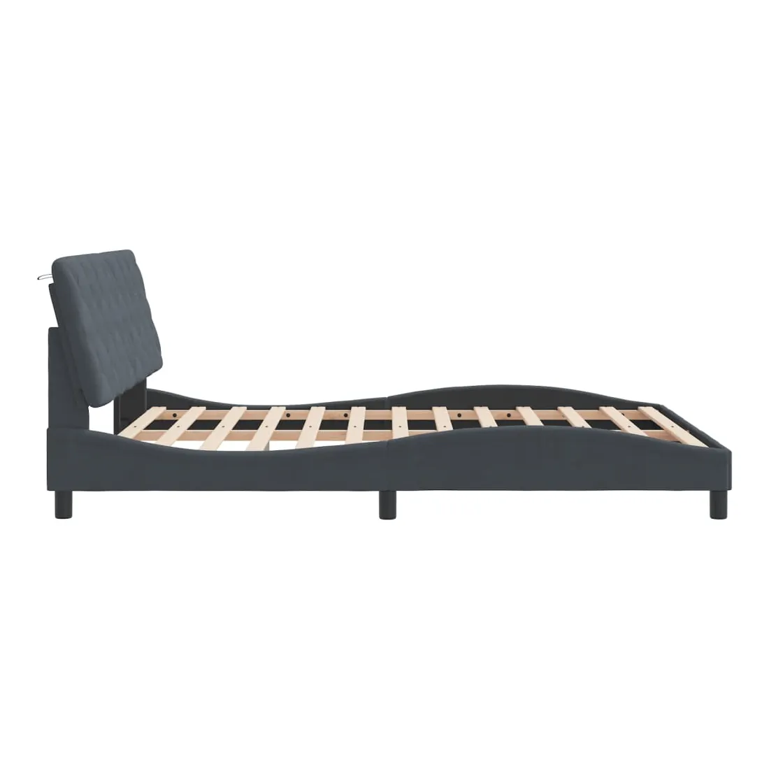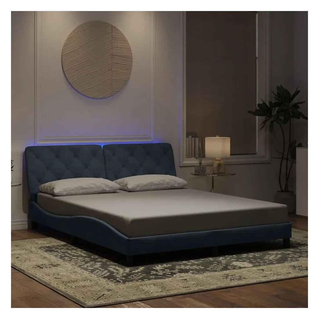 Obtenez une meilleure nuit de sommeil reposante grâce à ce cadre de lit avec lumières LED ! Il est un supplément accueillant à toute chambre à coucher. Velours doux : le velours est un tissu doux et confortable, agréable au toucher. Lattes de contreplaqué : les lattes de contreplaqué assurent une bonne répartition du poids, garantissant que le matelas reste en place à chaque torsion de votre corps pendant le sommeil. Excellent soutien : l'oreiller de tête de lit est rembourré avec de la mousse pour un confort ultra doux et optimal vous offre un excellent soutien du dos lorsque vous êtes assis dans votre lit pour lire ou regarder la télévision. Bande LED colorée : apportez de la gaieté dans l'obscurité avec des lumières LED colorées ! Les bandes auto-agrippantes situées à l'arrière du coussin de la tête de lit peuvent être utilisées pour fixer les lumières LED. Design latéral ondulé : l’aspect ondulé du cadre de lit est élégant et sophistiqué, ajoutant une touche moderne et élégante à votre décor, ce qui en fait le point central de votre chambre à coucher. Bon à savoir :Un matelas n'est pas inclus avec ce lit. Nous offrons une sélection variée de matelas. Vous pouvez consulter notre boutique pour trouver un matelas assorti.Ce produit est doté d'un connecteur USB qui nécessite une source d'alimentation USB de 5V certifiée (non incluse).