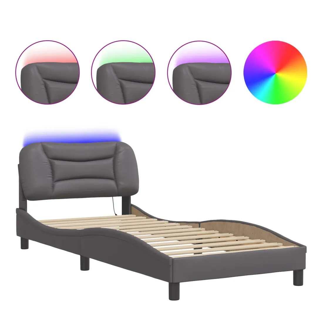 Obtenez une meilleure nuit de sommeil reposante grâce à ce cadre de lit avec lumières LED ! Il est un supplément accueillant à toute chambre à coucher. Similicuir durable : le similicuir de qualité supérieure est un matériau très durable. Il est résistant aux taches, ce qui le rend facile à nettoyer avec un chiffon humide. La surface lisse donne également un aspect luxueux et la beauté du cuir véritable.Lattes de contreplaqué : les lattes de contreplaqué assurent une bonne répartition du poids, garantissant que le matelas reste en place à chaque torsion de votre corps pendant le sommeil.Excellent soutien : la tête de lit vous offre un excellent soutien du dos lorsque vous êtes assis dans votre lit pour lire ou regarder la télévision.Bande LED colorée : apportez de la gaieté dans l'obscurité avec des lumières LED colorées ! Les bandes auto-agrippantes situées à l'arrière du coussin de la tête de lit peuvent être utilisées pour fixer les lumières LED.Design latéral ondulé : l’aspect ondulé du cadre de lit est élégant et sophistiqué, ajoutant une touche moderne et élégante à votre décor, ce qui en fait le point central de votre chambre à coucher. Bon à savoir :Un matelas n'est pas inclus avec ce lit. Nous offrons une sélection variée de matelas. Vous pouvez consulter notre boutique pour trouver un matelas assorti.Ce produit est doté d'un connecteur USB qui nécessite une source d'alimentation USB de 5V certifiée (non incluse).