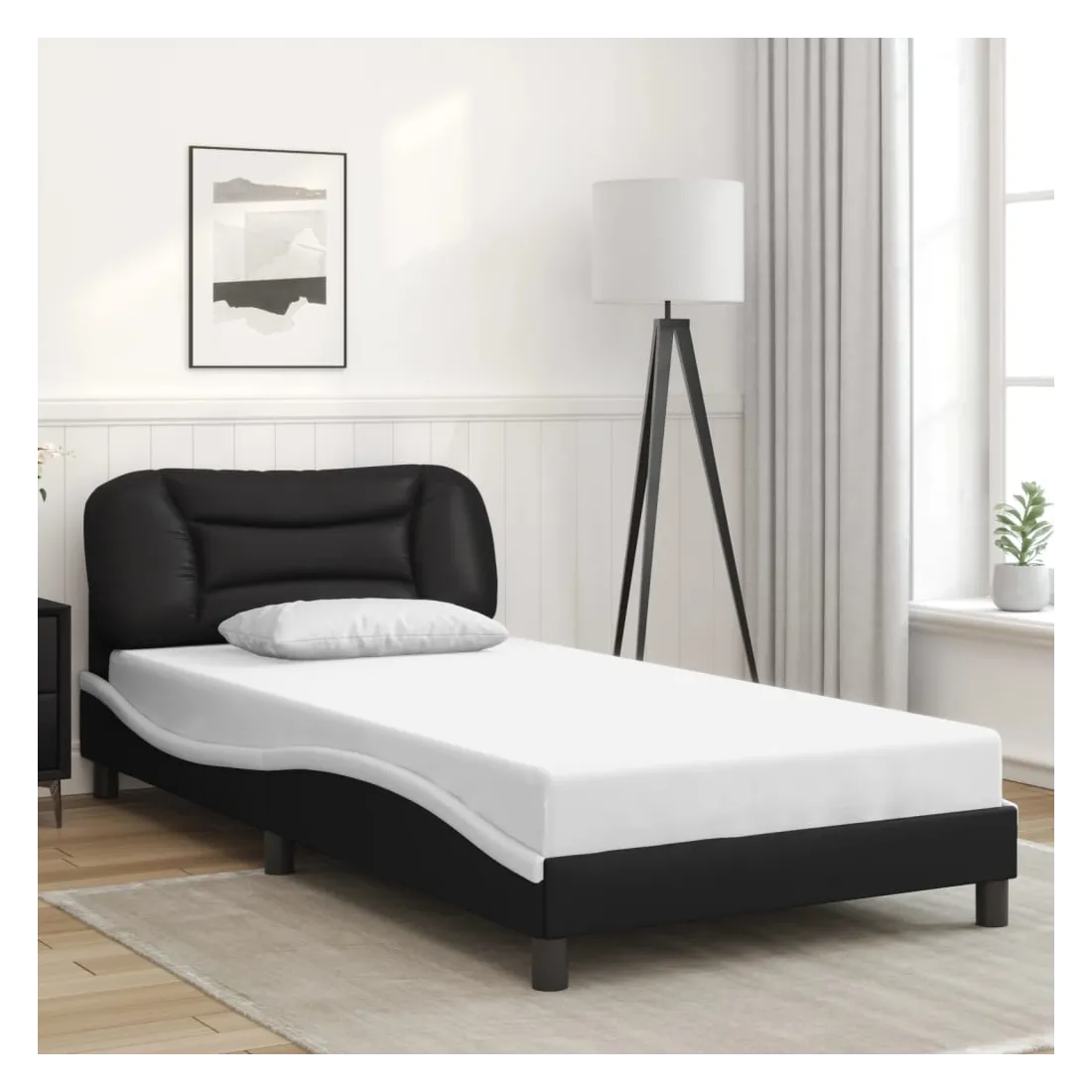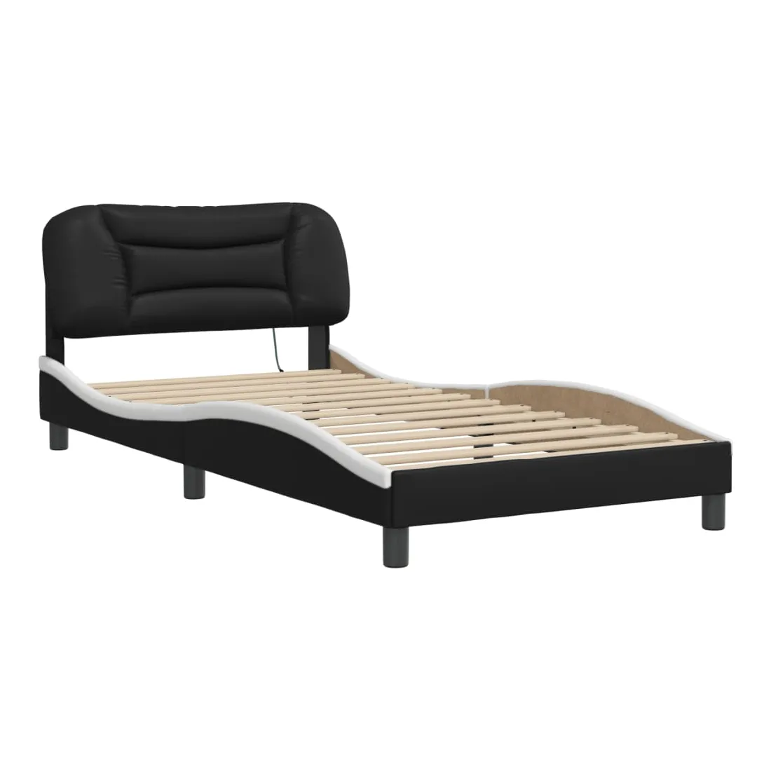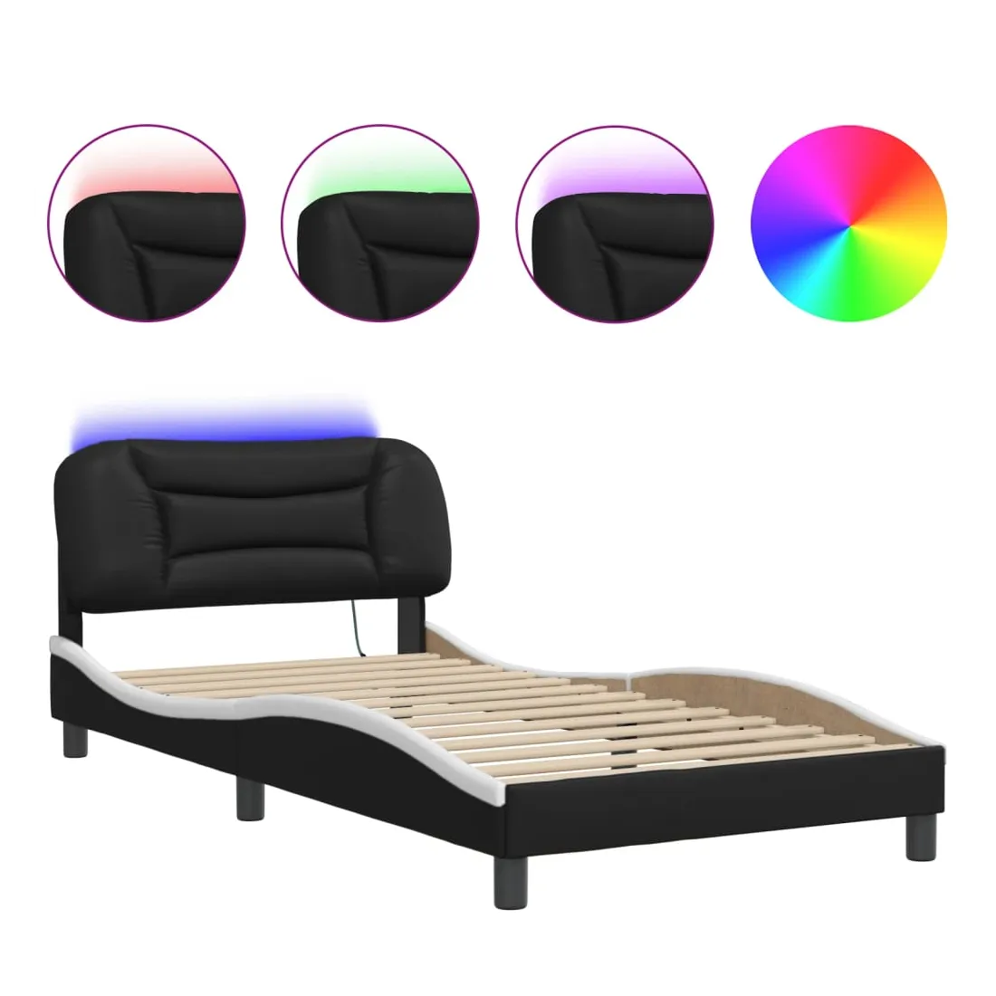 Obtenez une meilleure nuit de sommeil reposante grâce à ce cadre de lit avec lumières LED ! Il est un supplément accueillant à toute chambre à coucher. Similicuir durable : le similicuir de qualité supérieure est un matériau très durable. Il est résistant aux taches, ce qui le rend facile à nettoyer avec un chiffon humide. La surface lisse donne également un aspect luxueux et la beauté du cuir véritable.Lattes de contreplaqué : les lattes de contreplaqué assurent une bonne répartition du poids, garantissant que le matelas reste en place à chaque torsion de votre corps pendant le sommeil.Excellent soutien : la tête de lit vous offre un excellent soutien du dos lorsque vous êtes assis dans votre lit pour lire ou regarder la télévision.Bande LED colorée : apportez de la gaieté dans l'obscurité avec des lumières LED colorées ! Les bandes auto-agrippantes situées à l'arrière du coussin de la tête de lit peuvent être utilisées pour fixer les lumières LED.Design latéral ondulé : l’aspect ondulé du cadre de lit est élégant et sophistiqué, ajoutant une touche moderne et élégante à votre décor, ce qui en fait le point central de votre chambre à coucher. Bon à savoir :Un matelas n'est pas inclus avec ce lit. Nous offrons une sélection variée de matelas. Vous pouvez consulter notre boutique pour trouver un matelas assorti.Ce produit est doté d'un connecteur USB qui nécessite une source d'alimentation USB de 5V certifiée (non incluse).
