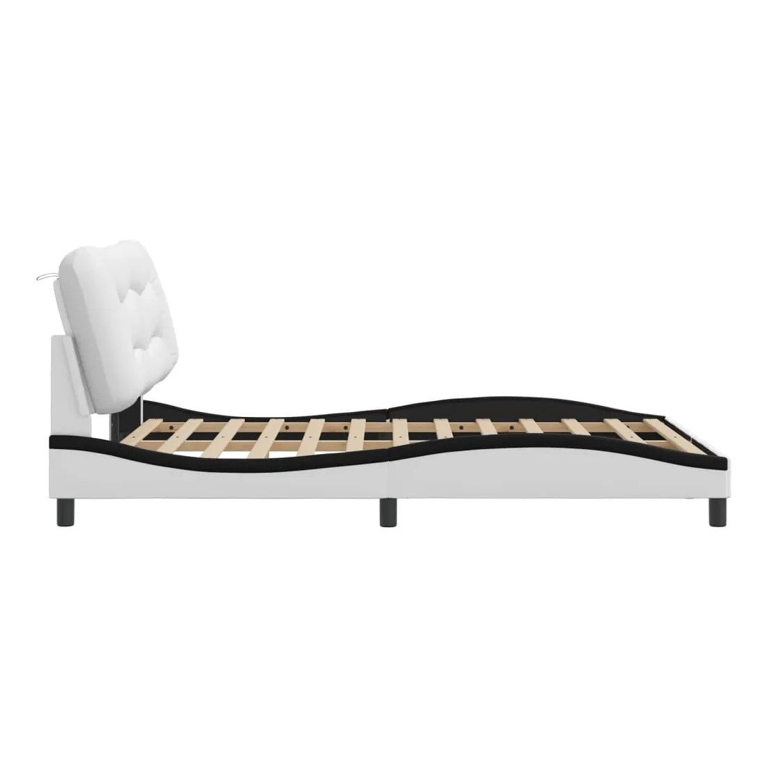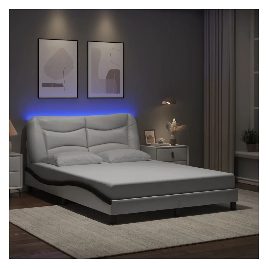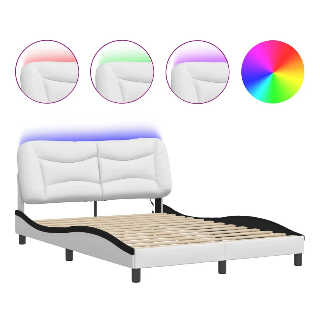 Obtenez une meilleure nuit de sommeil reposante grâce à ce cadre de lit avec lumières LED ! Il est un supplément accueillant à toute chambre à coucher. Similicuir durable : le similicuir de qualité supérieure est un matériau très durable. Il est résistant aux taches, ce qui le rend facile à nettoyer avec un chiffon humide. La surface lisse donne également un aspect luxueux et la beauté du cuir véritable.Lattes de contreplaqué : les lattes de contreplaqué assurent une bonne répartition du poids, garantissant que le matelas reste en place à chaque torsion de votre corps pendant le sommeil.Excellent soutien : la tête de lit vous offre un excellent soutien du dos lorsque vous êtes assis dans votre lit pour lire ou regarder la télévision.Bande LED colorée : apportez de la gaieté dans l'obscurité avec des lumières LED colorées ! Les bandes auto-agrippantes situées à l'arrière du coussin de la tête de lit peuvent être utilisées pour fixer les lumières LED.Design latéral ondulé : l’aspect ondulé du cadre de lit est élégant et sophistiqué, ajoutant une touche moderne et élégante à votre décor, ce qui en fait le point central de votre chambre à coucher. Bon à savoir :Un matelas n'est pas inclus avec ce lit. Nous offrons une sélection variée de matelas. Vous pouvez consulter notre boutique pour trouver un matelas assorti.Ce produit est doté d'un connecteur USB qui nécessite une source d'alimentation USB de 5V certifiée (non incluse).