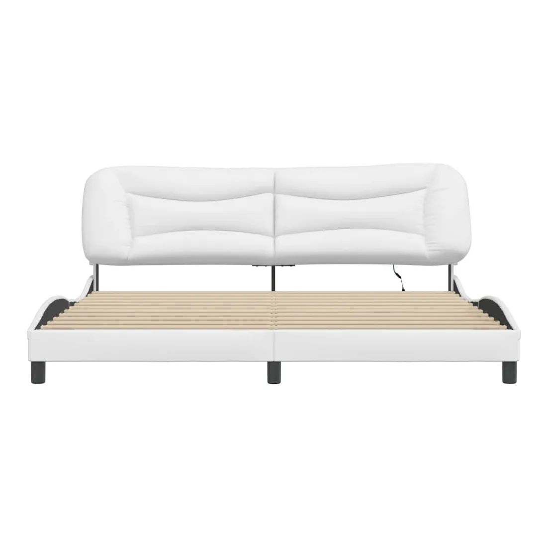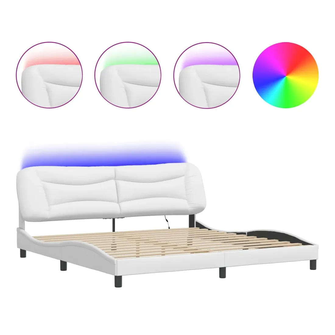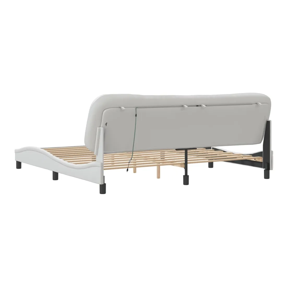 Obtenez une meilleure nuit de sommeil reposante grâce à ce cadre de lit avec lumières LED ! Il est un supplément accueillant à toute chambre à coucher. Similicuir durable : le similicuir de qualité supérieure est un matériau très durable. Il est résistant aux taches, ce qui le rend facile à nettoyer avec un chiffon humide. La surface lisse donne également un aspect luxueux et la beauté du cuir véritable.Lattes de contreplaqué : les lattes de contreplaqué assurent une bonne répartition du poids, garantissant que le matelas reste en place à chaque torsion de votre corps pendant le sommeil.Excellent soutien : la tête de lit vous offre un excellent soutien du dos lorsque vous êtes assis dans votre lit pour lire ou regarder la télévision.Bande LED colorée : apportez de la gaieté dans l'obscurité avec des lumières LED colorées ! Les bandes auto-agrippantes situées à l'arrière du coussin de la tête de lit peuvent être utilisées pour fixer les lumières LED.Design latéral ondulé : l’aspect ondulé du cadre de lit est élégant et sophistiqué, ajoutant une touche moderne et élégante à votre décor, ce qui en fait le point central de votre chambre à coucher. Bon à savoir :Un matelas n'est pas inclus avec ce lit. Nous offrons une sélection variée de matelas. Vous pouvez consulter notre boutique pour trouver un matelas assorti.Ce produit est doté d'un connecteur USB qui nécessite une source d'alimentation USB de 5V certifiée (non incluse).