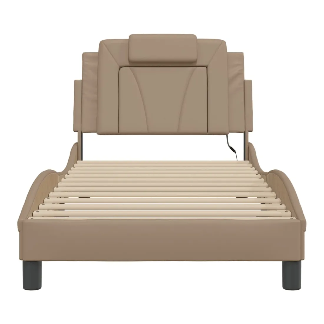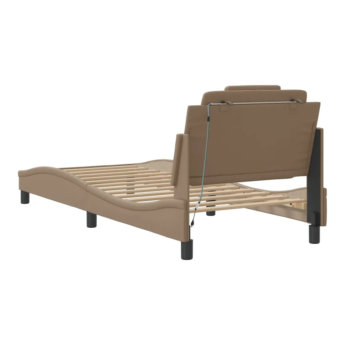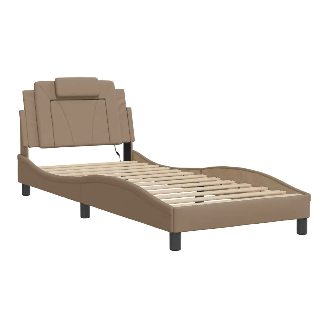 Obtenez une meilleure nuit de sommeil reposante grâce à ce cadre de lit avec lumières LED ! Il est un supplément accueillant à toute chambre à coucher. Similicuir durable : le similicuir de qualité supérieure est un matériau très durable. Il est résistant aux taches, ce qui le rend facile à nettoyer avec un chiffon humide. La surface lisse donne également un aspect luxueux et la beauté du cuir véritable.Lattes de contreplaqué : les lattes de contreplaqué assurent une bonne répartition du poids, garantissant que le matelas reste en place à chaque torsion de votre corps pendant le sommeil. Excellent soutien : l'oreiller de tête de lit est rembourré avec de la mousse pour un confort ultra doux et optimal vous offre un excellent soutien du dos lorsque vous êtes assis dans votre lit pour lire ou regarder la télévision. Bande LED colorée : apportez de la gaieté dans l'obscurité avec des lumières LED colorées ! Les bandes auto-agrippantes situées à l'arrière du coussin de la tête de lit peuvent être utilisées pour fixer les lumières LED. Design latéral ondulé : l’aspect ondulé du cadre de lit est élégant et sophistiqué, ajoutant une touche moderne et élégante à votre décor, ce qui en fait le point central de votre chambre à coucher. Bon à savoir :Un matelas n'est pas inclus avec ce lit. Nous offrons une sélection variée de matelas. Vous pouvez consulter notre boutique pour trouver un matelas assorti.Ce produit est doté d'un connecteur USB qui nécessite une source d'alimentation USB de 5V certifiée (non incluse).