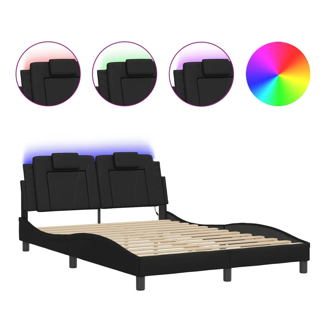 Obtenez une meilleure nuit de sommeil reposante grâce à ce cadre de lit avec lumières LED ! Il est un supplément accueillant à toute chambre à coucher. Similicuir durable : le similicuir de qualité supérieure est un matériau très durable. Il est résistant aux taches, ce qui le rend facile à nettoyer avec un chiffon humide. La surface lisse donne également un aspect luxueux et la beauté du cuir véritable.Lattes de contreplaqué : les lattes de contreplaqué assurent une bonne répartition du poids, garantissant que le matelas reste en place à chaque torsion de votre corps pendant le sommeil. Excellent soutien : l'oreiller de tête de lit est rembourré avec de la mousse pour un confort ultra doux et optimal vous offre un excellent soutien du dos lorsque vous êtes assis dans votre lit pour lire ou regarder la télévision. Bande LED colorée : apportez de la gaieté dans l'obscurité avec des lumières LED colorées ! Les bandes auto-agrippantes situées à l'arrière du coussin de la tête de lit peuvent être utilisées pour fixer les lumières LED. Design latéral ondulé : l’aspect ondulé du cadre de lit est élégant et sophistiqué, ajoutant une touche moderne et élégante à votre décor, ce qui en fait le point central de votre chambre à coucher. Bon à savoir :Un matelas n'est pas inclus avec ce lit. Nous offrons une sélection variée de matelas. Vous pouvez consulter notre boutique pour trouver un matelas assorti.Ce produit est doté d'un connecteur USB qui nécessite une source d'alimentation USB de 5V certifiée (non incluse).