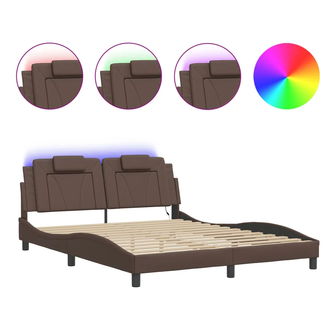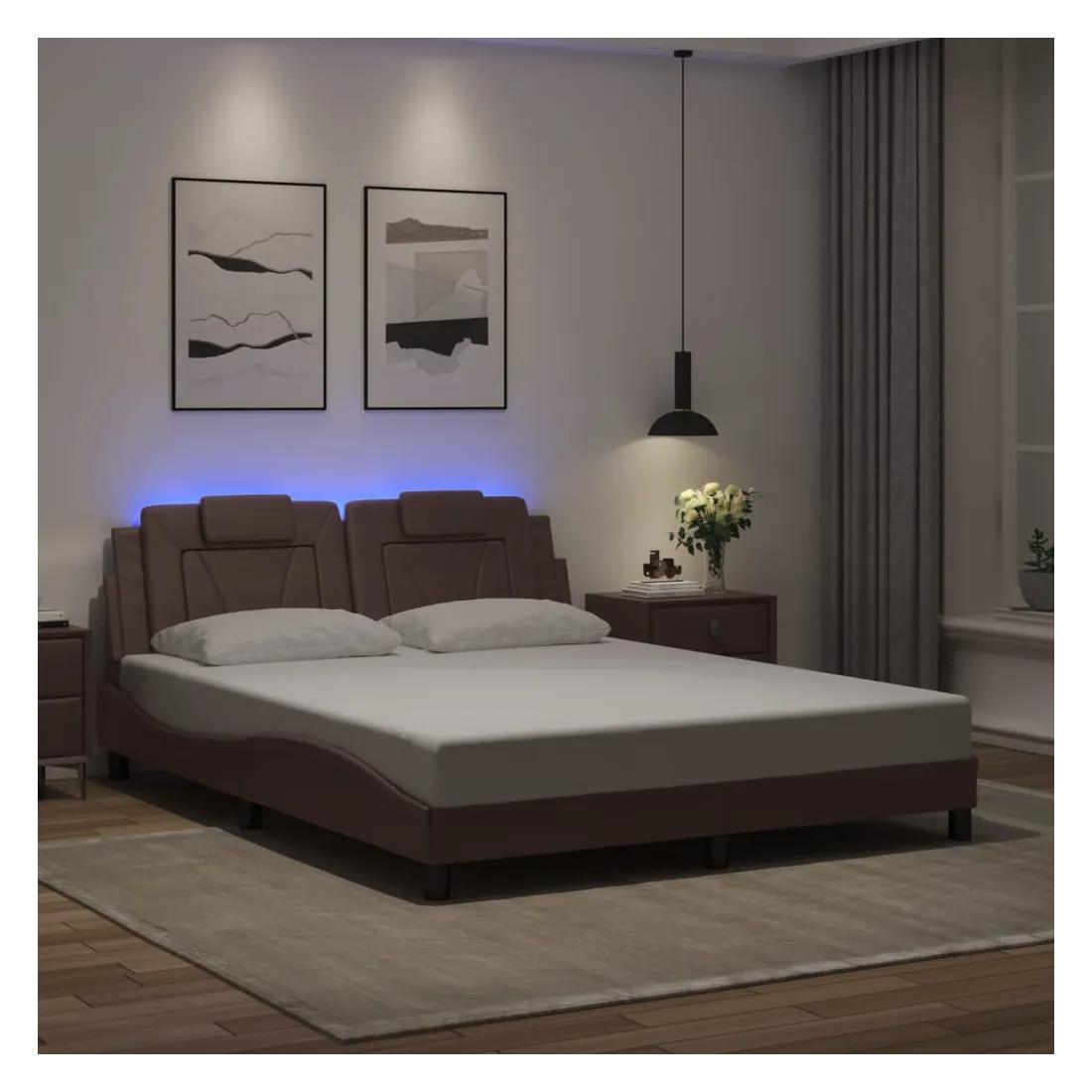 Obtenez une meilleure nuit de sommeil reposante grâce à ce cadre de lit avec lumières LED ! Il est un supplément accueillant à toute chambre à coucher. Similicuir durable : le similicuir de qualité supérieure est un matériau très durable. Il est résistant aux taches, ce qui le rend facile à nettoyer avec un chiffon humide. La surface lisse donne également un aspect luxueux et la beauté du cuir véritable.Lattes de contreplaqué : les lattes de contreplaqué assurent une bonne répartition du poids, garantissant que le matelas reste en place à chaque torsion de votre corps pendant le sommeil. Excellent soutien : l'oreiller de tête de lit est rembourré avec de la mousse pour un confort ultra doux et optimal vous offre un excellent soutien du dos lorsque vous êtes assis dans votre lit pour lire ou regarder la télévision. Bande LED colorée : apportez de la gaieté dans l'obscurité avec des lumières LED colorées ! Les bandes auto-agrippantes situées à l'arrière du coussin de la tête de lit peuvent être utilisées pour fixer les lumières LED. Design latéral ondulé : l’aspect ondulé du cadre de lit est élégant et sophistiqué, ajoutant une touche moderne et élégante à votre décor, ce qui en fait le point central de votre chambre à coucher. Bon à savoir :Un matelas n'est pas inclus avec ce lit. Nous offrons une sélection variée de matelas. Vous pouvez consulter notre boutique pour trouver un matelas assorti.Ce produit est doté d'un connecteur USB qui nécessite une source d'alimentation USB de 5V certifiée (non incluse).
