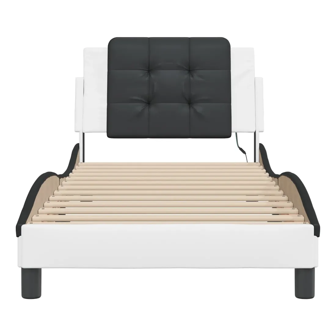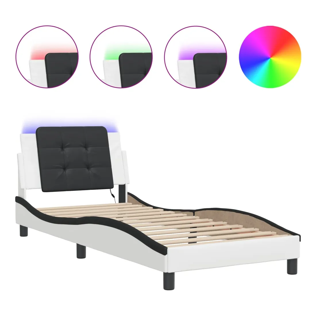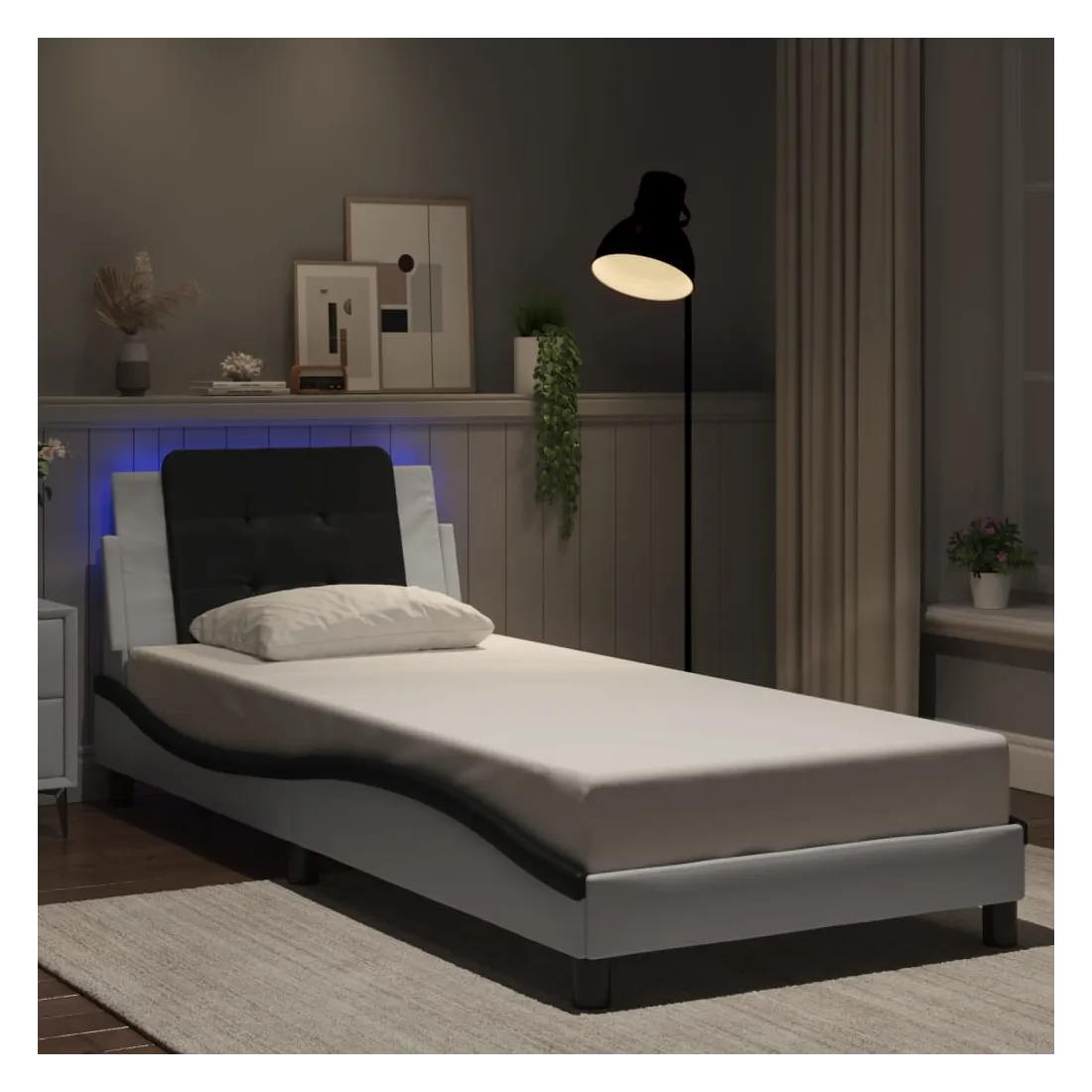 Cadre de lit avec LED sans matelas Zadar blanc et noir 90x190 cm