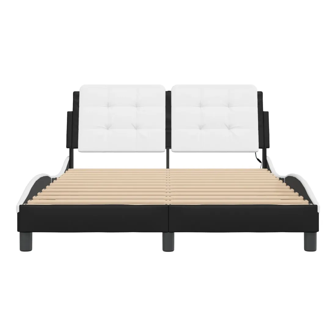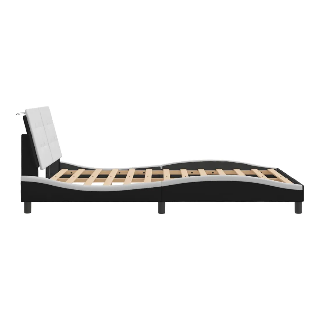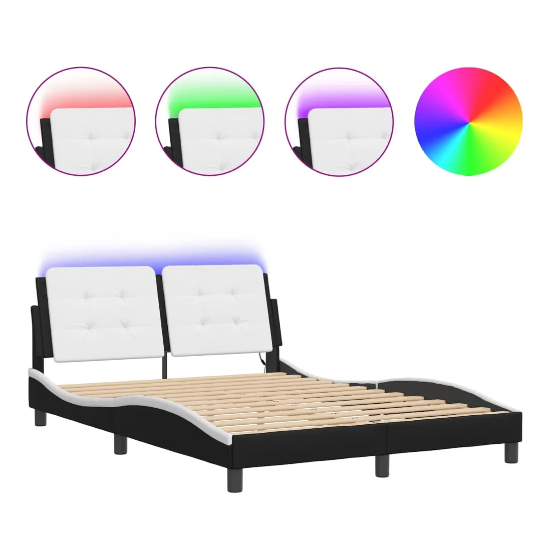 Obtenez une meilleure nuit de sommeil reposante grâce à ce cadre de lit avec lumières LED ! Il est un supplément accueillant à toute chambre à coucher. Similicuir durable : le similicuir de qualité supérieure est un matériau très durable. Il est résistant aux taches, ce qui le rend facile à nettoyer avec un chiffon humide. La surface lisse donne également un aspect luxueux et la beauté du cuir véritable.Lattes de contreplaqué : les lattes de contreplaqué assurent une bonne répartition du poids, garantissant que le matelas reste en place à chaque torsion de votre corps pendant le sommeil.Excellent soutien : la tête de lit vous offre un excellent soutien du dos lorsque vous êtes assis dans votre lit pour lire ou regarder la télévision.Bande LED colorée : apportez de la gaieté dans l'obscurité avec des lumières LED colorées ! Les bandes auto-agrippantes situées à l'arrière du coussin de la tête de lit peuvent être utilisées pour fixer les lumières LED.Design latéral ondulé : l’aspect ondulé du cadre de lit est élégant et sophistiqué, ajoutant une touche moderne et élégante à votre décor, ce qui en fait le point central de votre chambre à coucher. Bon à savoir :Un matelas n'est pas inclus avec ce lit. Nous offrons une sélection variée de matelas. Vous pouvez consulter notre boutique pour trouver un matelas assorti.Ce produit est doté d'un connecteur USB qui nécessite une source d'alimentation USB de 5V certifiée (non incluse).