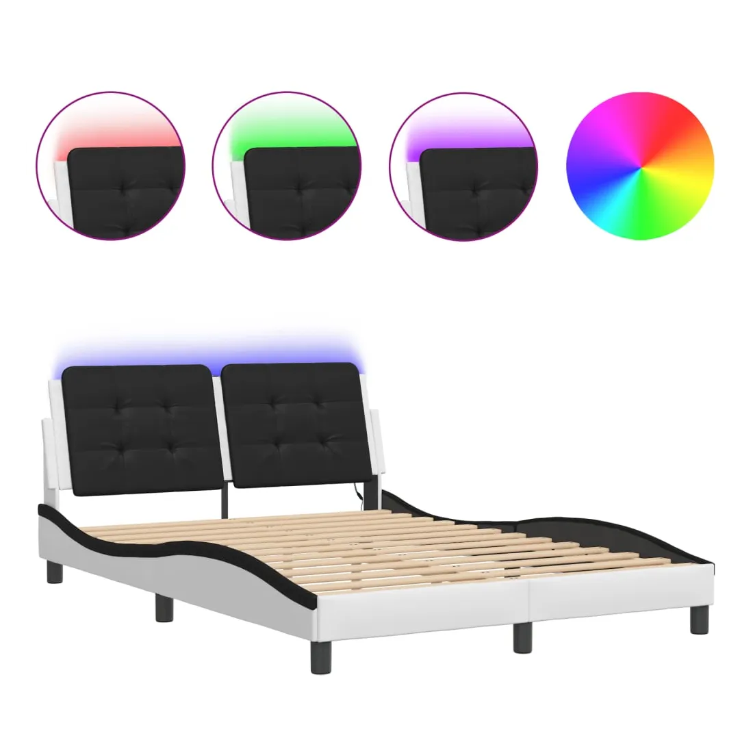 Obtenez une meilleure nuit de sommeil reposante grâce à ce cadre de lit avec lumières LED ! Il est un supplément accueillant à toute chambre à coucher. Similicuir durable : le similicuir de qualité supérieure est un matériau très durable. Il est résistant aux taches, ce qui le rend facile à nettoyer avec un chiffon humide. La surface lisse donne également un aspect luxueux et la beauté du cuir véritable.Lattes de contreplaqué : les lattes de contreplaqué assurent une bonne répartition du poids, garantissant que le matelas reste en place à chaque torsion de votre corps pendant le sommeil.Excellent soutien : la tête de lit vous offre un excellent soutien du dos lorsque vous êtes assis dans votre lit pour lire ou regarder la télévision.Bande LED colorée : apportez de la gaieté dans l'obscurité avec des lumières LED colorées ! Les bandes auto-agrippantes situées à l'arrière du coussin de la tête de lit peuvent être utilisées pour fixer les lumières LED.Design latéral ondulé : l’aspect ondulé du cadre de lit est élégant et sophistiqué, ajoutant une touche moderne et élégante à votre décor, ce qui en fait le point central de votre chambre à coucher. Bon à savoir :Un matelas n'est pas inclus avec ce lit. Nous offrons une sélection variée de matelas. Vous pouvez consulter notre boutique pour trouver un matelas assorti.Ce produit est doté d'un connecteur USB qui nécessite une source d'alimentation USB de 5V certifiée (non incluse).