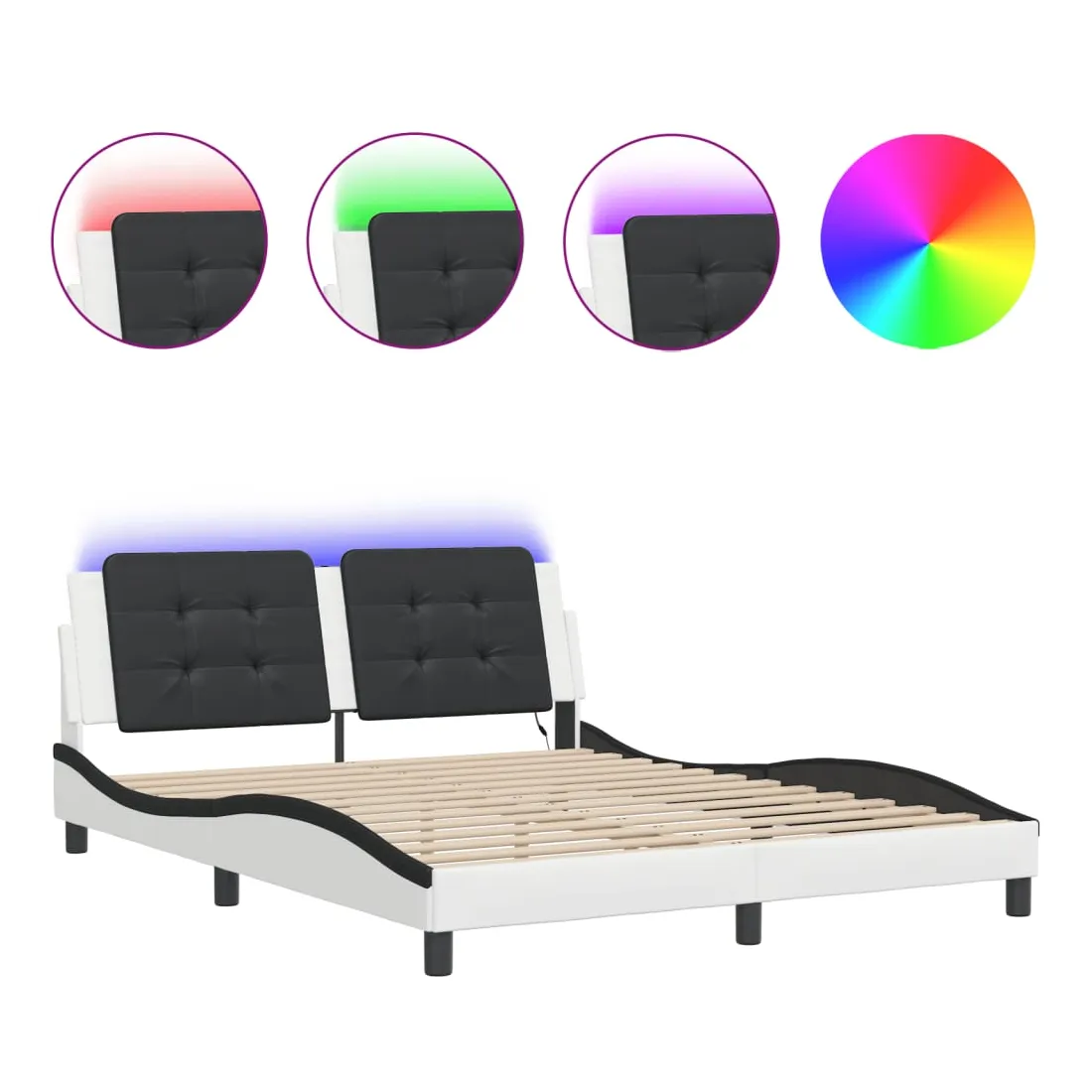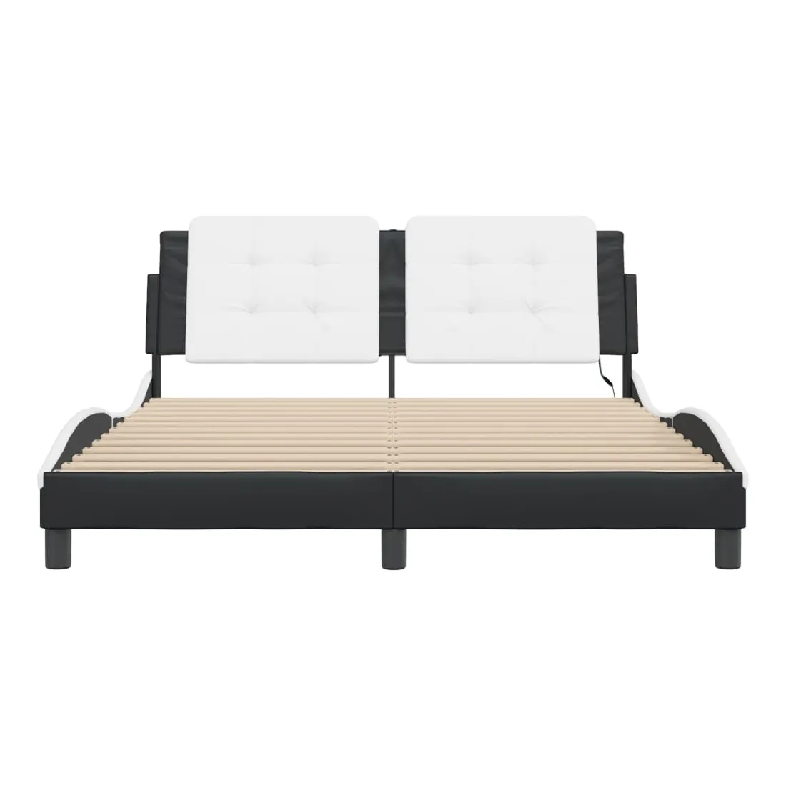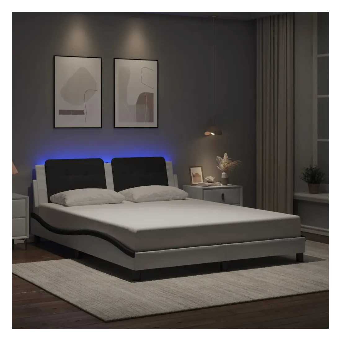 Cadre de lit avec LED sans matelas Zadar blanc et noir 160x200 cm