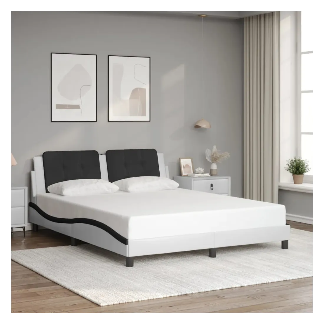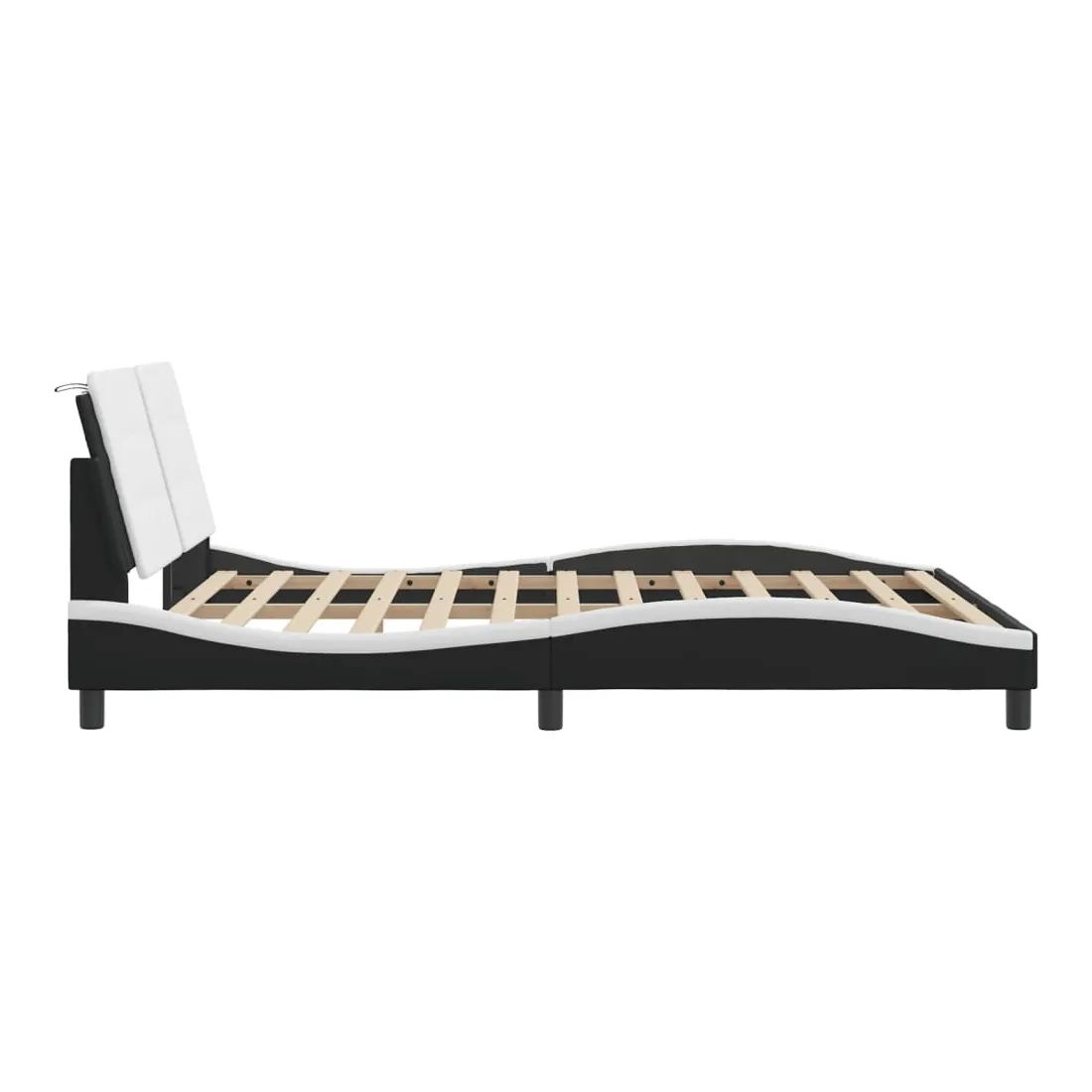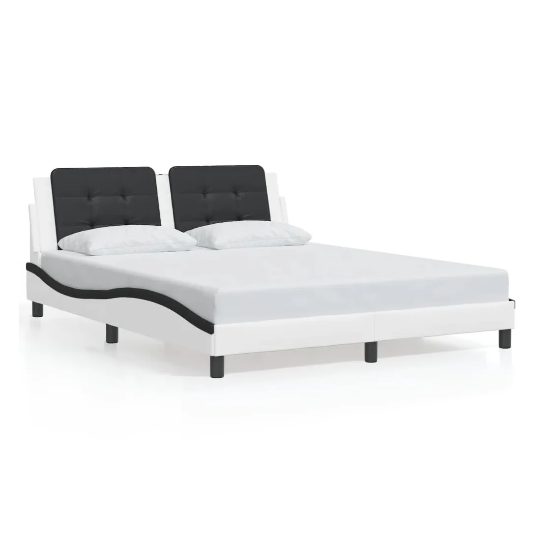 Cadre de lit avec LED sans matelas Zadar blanc et noir 160x200 cm