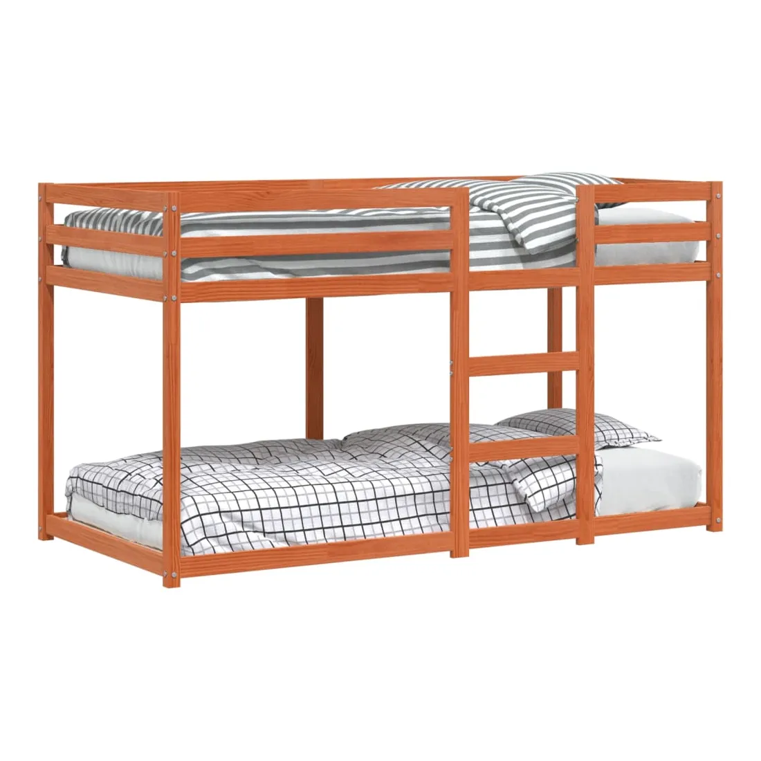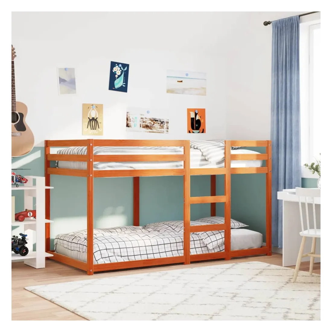 Ce lit superposé en bois est élégant et fonctionnel, ce qui en fait un supplément parfait à toute pièce dont l'espace est limité. Bois de pin massif : le bois de pin massif est un beau matériau naturel. Le bois de pin a un grain droit et les nœuds lui confèrent un aspect rustique caractéristique. Fabriqué en pin massif, ce lit superposé pour enfants est robuste et stable.Barrières de sécurité : le lit supérieur est équipé de garde-corps de sécurité sur les 4 côtés, afin que votre enfant puisse dormir sans craindre de tomber.Échelle pratique : ce lit superposé est doté d'une échelle qui facilite la montée et la descente dans et du lit.Lattes de contreplaqué : les lattes de contreplaqué assurent une bonne répartition du poids, garantissant que le matelas reste en place à chaque torsion de votre corps pendant le sommeil.Convient aux espaces limités : le lit double pour enfants constitue un excellent choix pour toute pièce à espace limité, il offre deux lits individuels au design compact. Bon à savoir :Le lit supérieur ne convient pas aux enfants de moins de 6 ans.Les matelas ne sont pas inclus avec ce lit superposé. Nous offrons une sélection variée de matelas. Vous pouvez consulter notre boutique pour les matelas assortis.