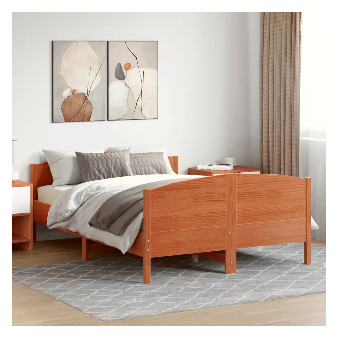 Profitez d'une bonne nuit de sommeil dans ce cadre de lit en bois ! Il sera un supplément pratique et décoratif à votre intérieur. Bois de pin massif : le bois de pin massif est un matériau naturel magnifique. Le bois de pin a un grain droit et les nœuds donnent au matériau son aspect caractéristique et rustique.Lattes de contreplaqué : les lattes de contreplaqué assurent une bonne répartition du poids, garantissant que le matelas reste en place à chaque torsion de votre corps pendant le sommeil.Tête de lit et pied de lit fonctionnels : la tête et le pied de lit du lit en bois peuvent maintenir votre matelas en place. De plus, la tête de lit vous offre un excellent soutien du dos lorsque vous vous asseyez dans le lit pour lire ou regarder la télévision. Bon à savoir :Un matelas n'est pas inclus avec ce lit. Nous offrons une sélection variée de matelas. Vous pouvez consulter notre boutique pour trouver un matelas assorti.