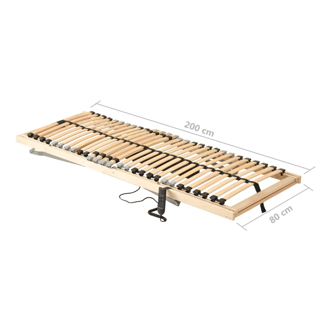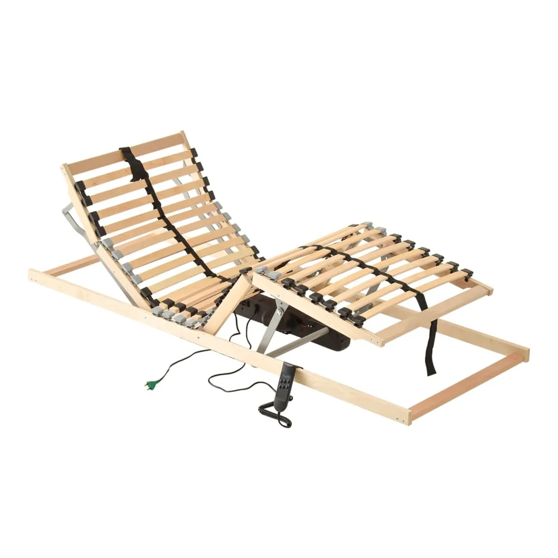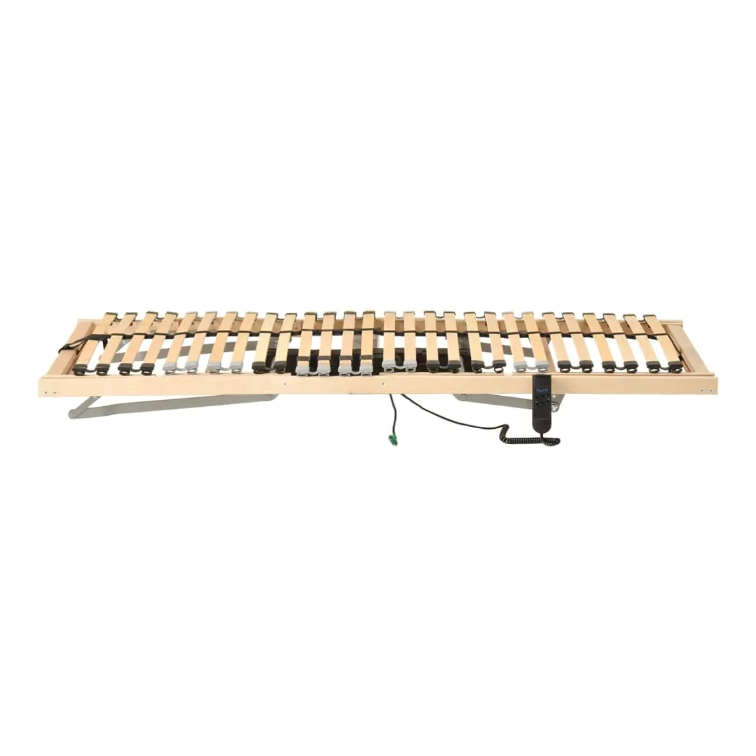 Ce sommier à lattes électrique confortable vous fera aimer encore davantage votre lit ! Avec un cadre en hêtre massif et des lattes en bouleau, le sommier est robuste et durable. Les 7 zones de confort offrent un soutien optimal à votre corps. Les deux extrémités des lattes sont maintenues en place par des capuchons en caoutchouc SBS pour une meilleure stabilité de l'ensemble de la structure. Grâce aux 4 lattes doubles réglables dans la zone centrale, la fermeté de la base peut être ajustée en fonction de vos besoins. Avec une commande manuelle, les zones de la tête et des pieds sont réglables pour votre confort. Veuillez noter que la livraison comprend uniquement une base de lit à lattes ; un matelas et un cadre de lit ne sont pas inclus. Bon à savoir : l'assemblage est requis en raison des restrictions d'expédition limitant la taille du paquet à un maximum de 120 cm.