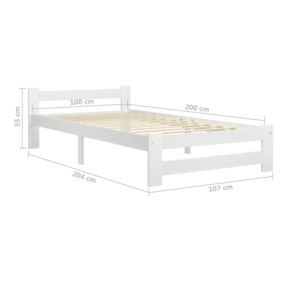 Apportez un aspect élégant et classique à votre chambre à coucher avec ce cadre de lit en bois de pin massif. Fabriqué en bois de pin massif, ce cadre de lit est extrêmement robuste et durable. Les lattes en contreplaqué robustes offrent le soutien et le confort nécessaires. Il convient pour un matelas de 100 x 200 cm. Veuillez noter que la livraison inclut un cadre de lit seulement ; un matelas n'est pas inclus. Vous pouvez chercher le matelas correspondant dans notre boutique.