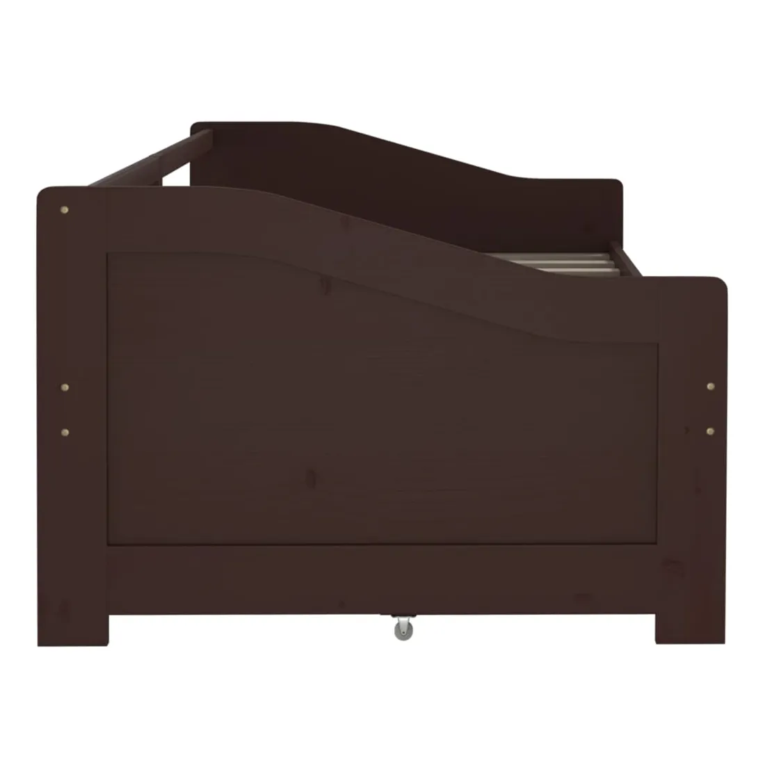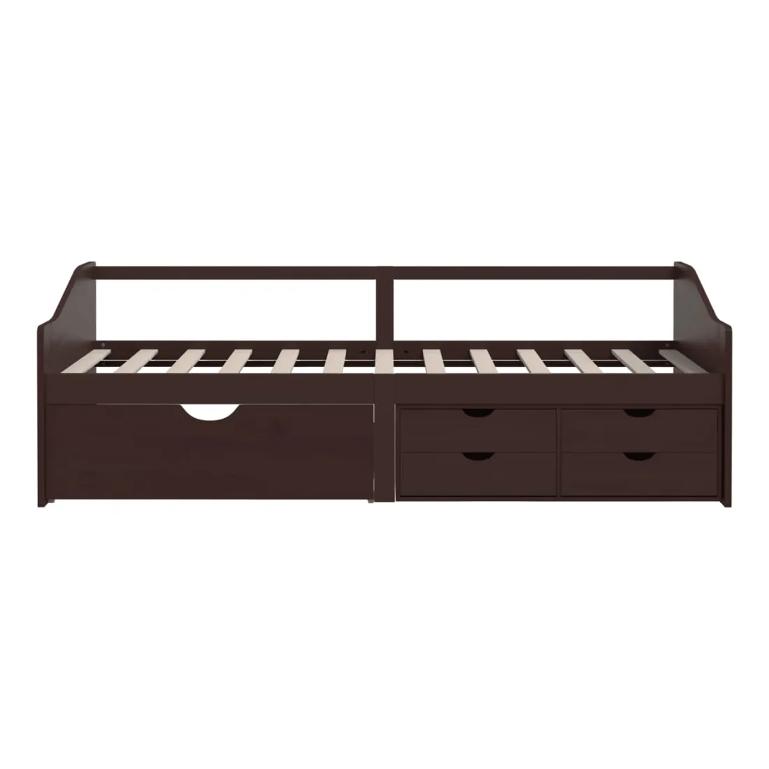 Le lit en bois multifonctionnel peut être utilisé comme un canapé pendant la journée, ou comme un lit pendant la nuit pour offrir une solution rapide pour accueillir des invités pour la nuit. Ce canapé-lit pratique saura attirer tous les regards, où qu'il sera placé ! Le canapé-lit est fabriqué en bois de pin massif, ce qui le rend robuste et stable. Les lattes robustes offrent également le soutien et le confort nécessaires. De plus, il comprend également 5 tiroirs de lit pour ranger les vêtements pliés, les jouets, etc. Remarque : la livraison comprend uniquement un cadre de lit de jour. Le matelas n'est pas inclus. Vous pouvez consulter notre boutique pour trouver les matelas assortis.